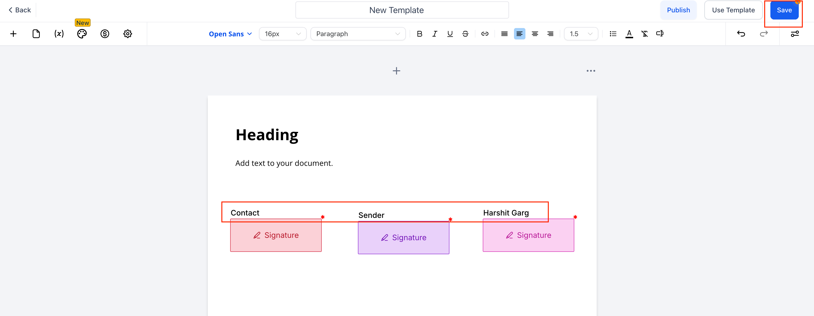 When your template includes Sender fields, the workflow can assign them to the correct internal signer at send time—no manual edits.