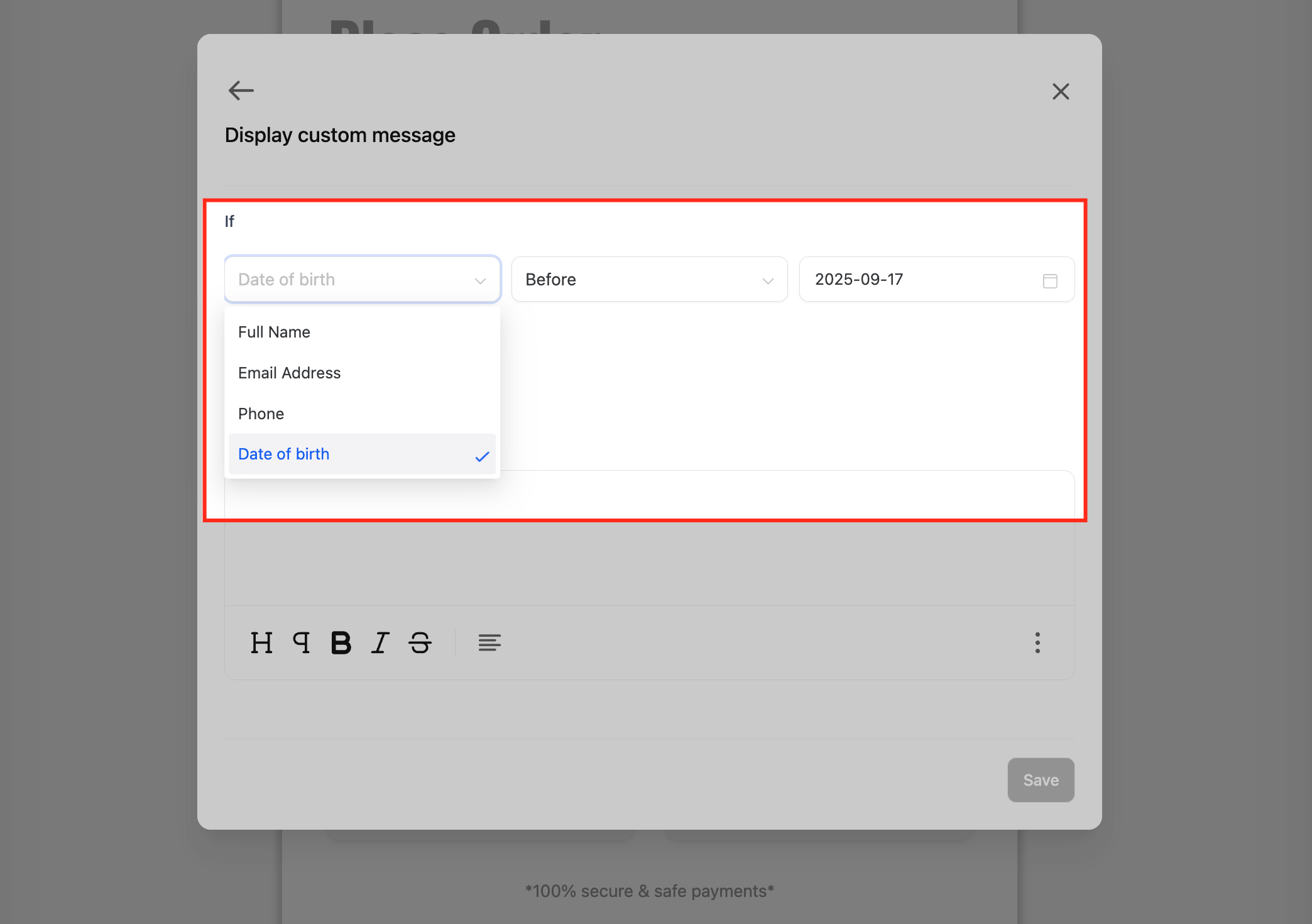 Select Field State – Pick the condition (e.g., is equal to, is empty).