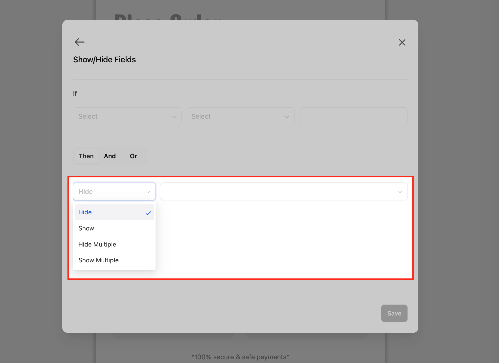 Show/Hide Fields: Pick which fields appear or hide