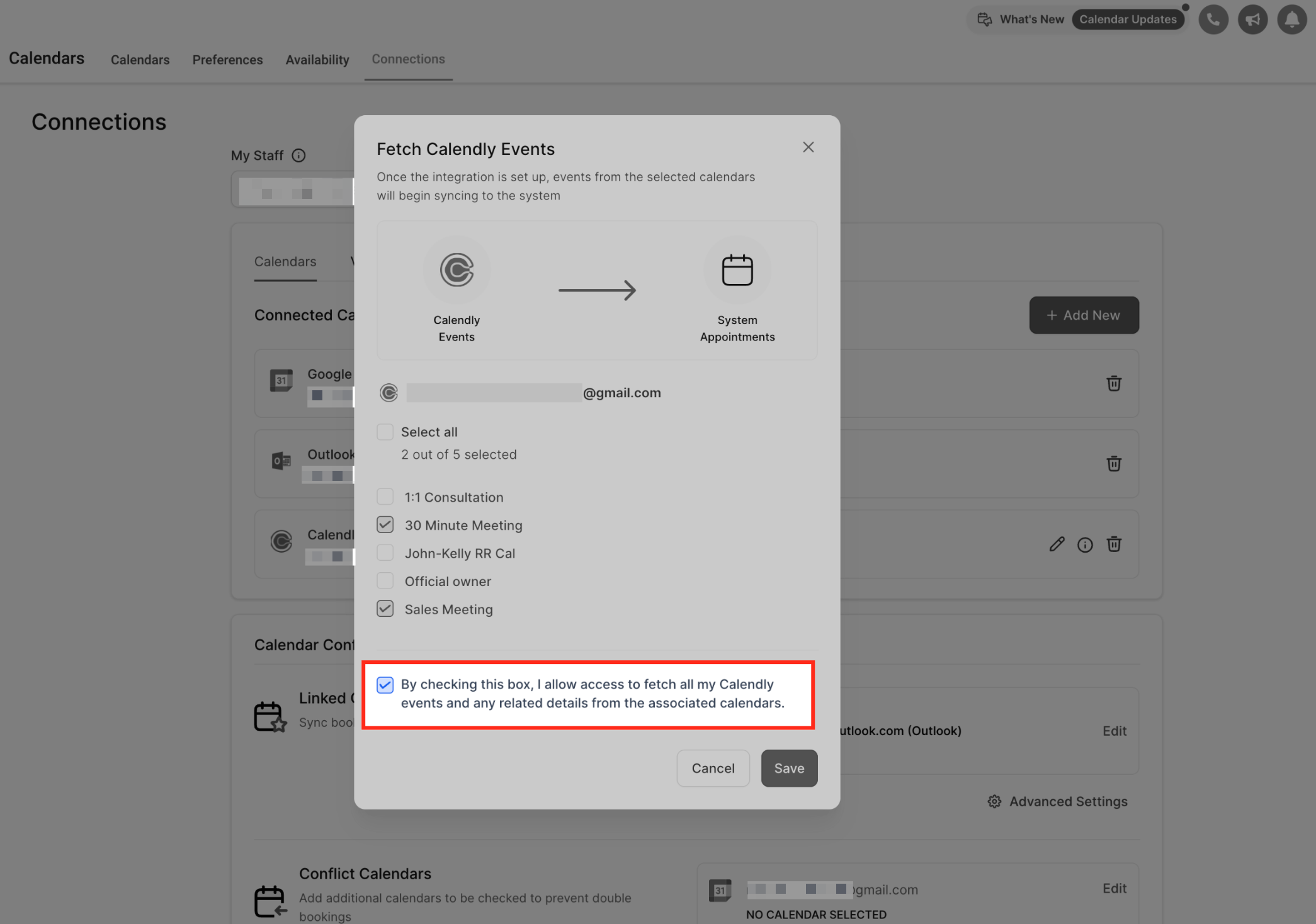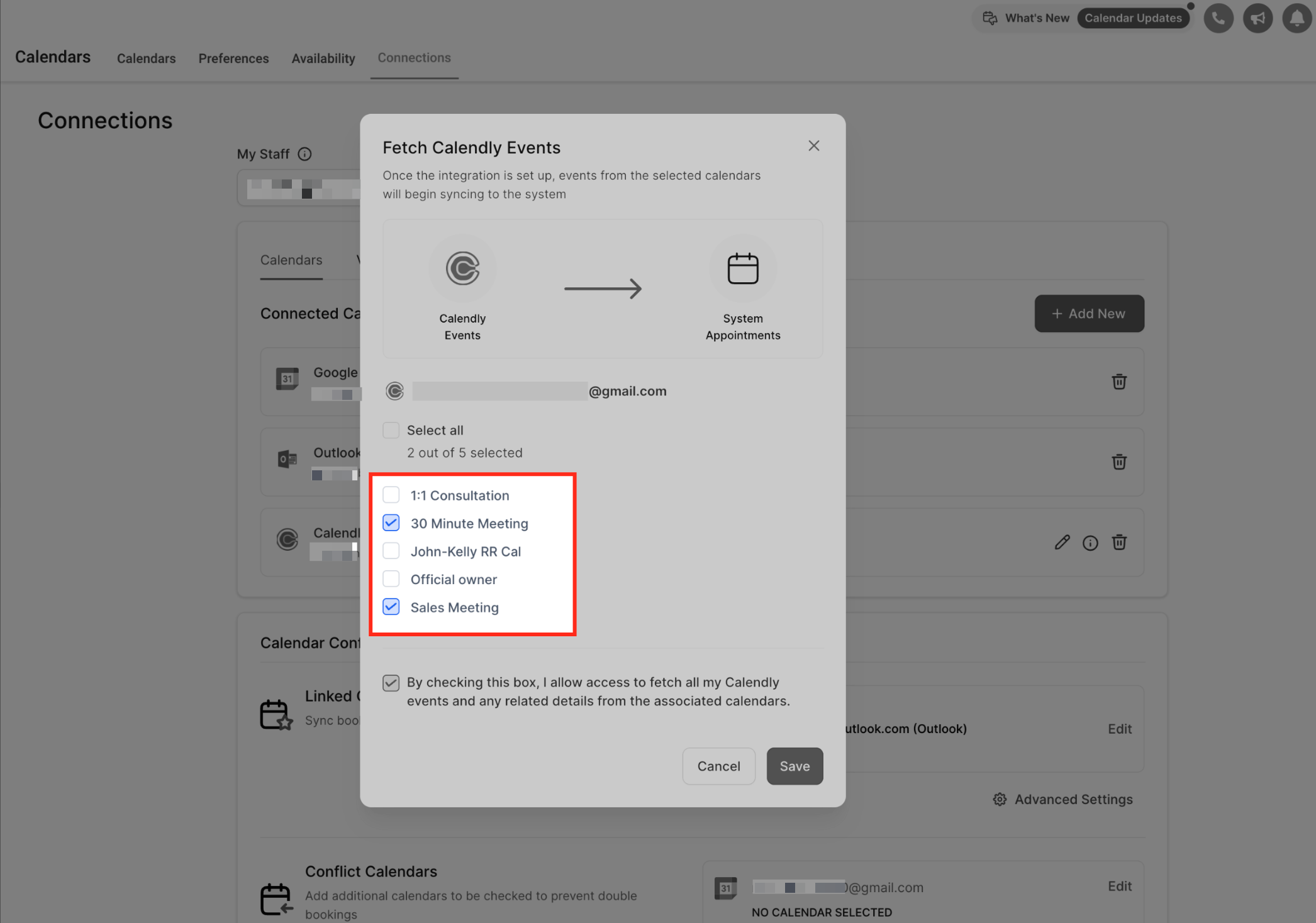 Update your calendar selections by checking or unchecking the events you’d like to sync. Only the calendars selected here will continue syncing into HighLevel.