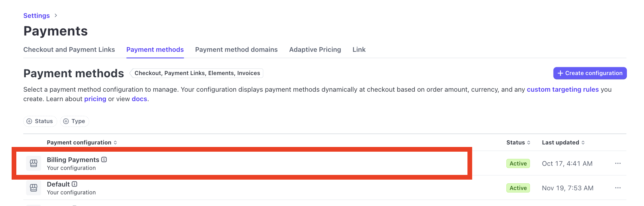 Keep a check on this help article to see the further updates for configurations and payment methods in each configuration. Some of the payment methods will be seen as blocked since those payment methods are yet to be enabled on our end to support in all connected accounts.
