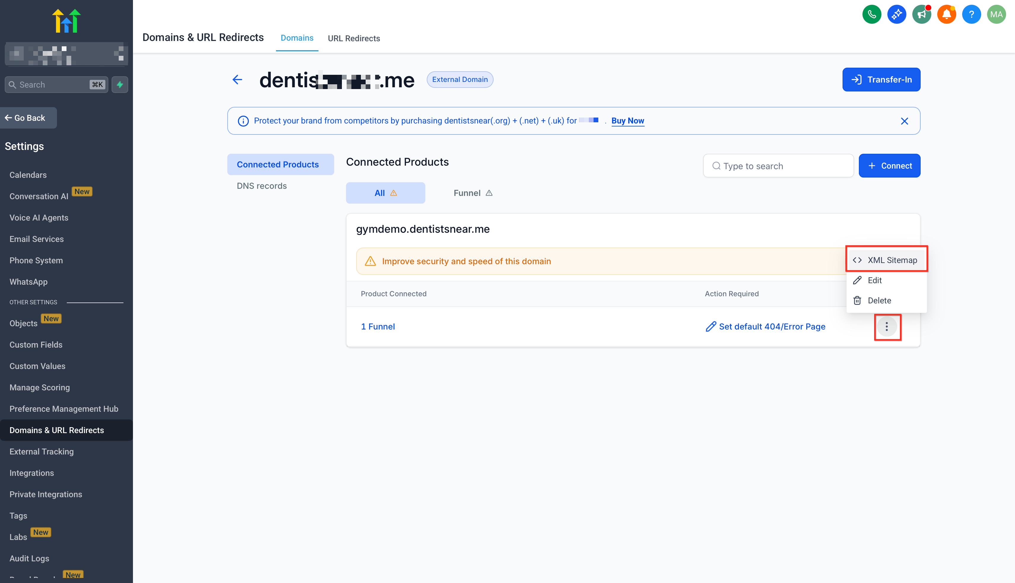 - Add the domain -Follow this article for Domain setup https://help.gohighlevel.com/support/solutions/articles/155000000734-how-to-use-the-domain-connect-feature-