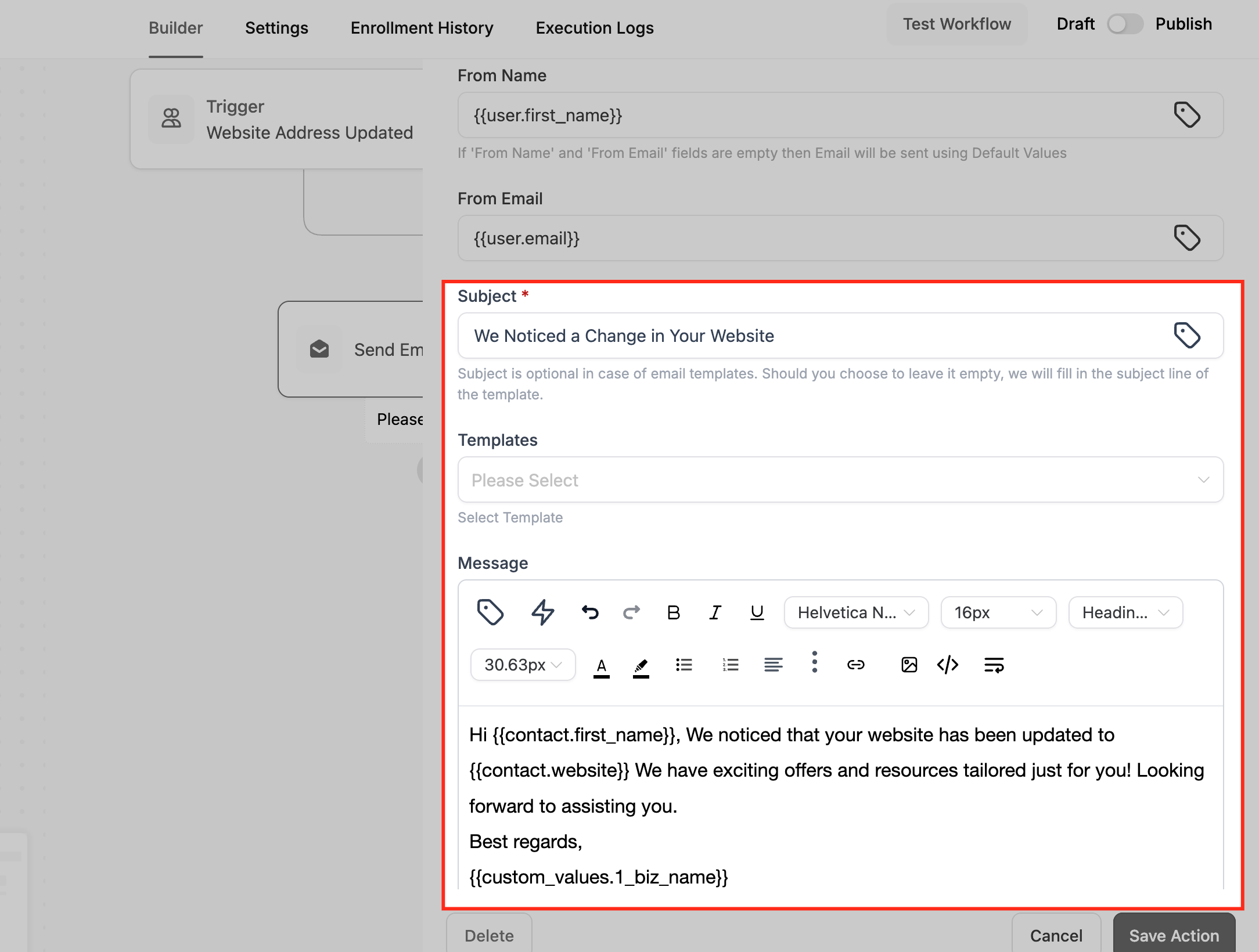 - Custom Field Updates – Example: If a contact’s “Preferred Service” is updated, send targeted promotions.