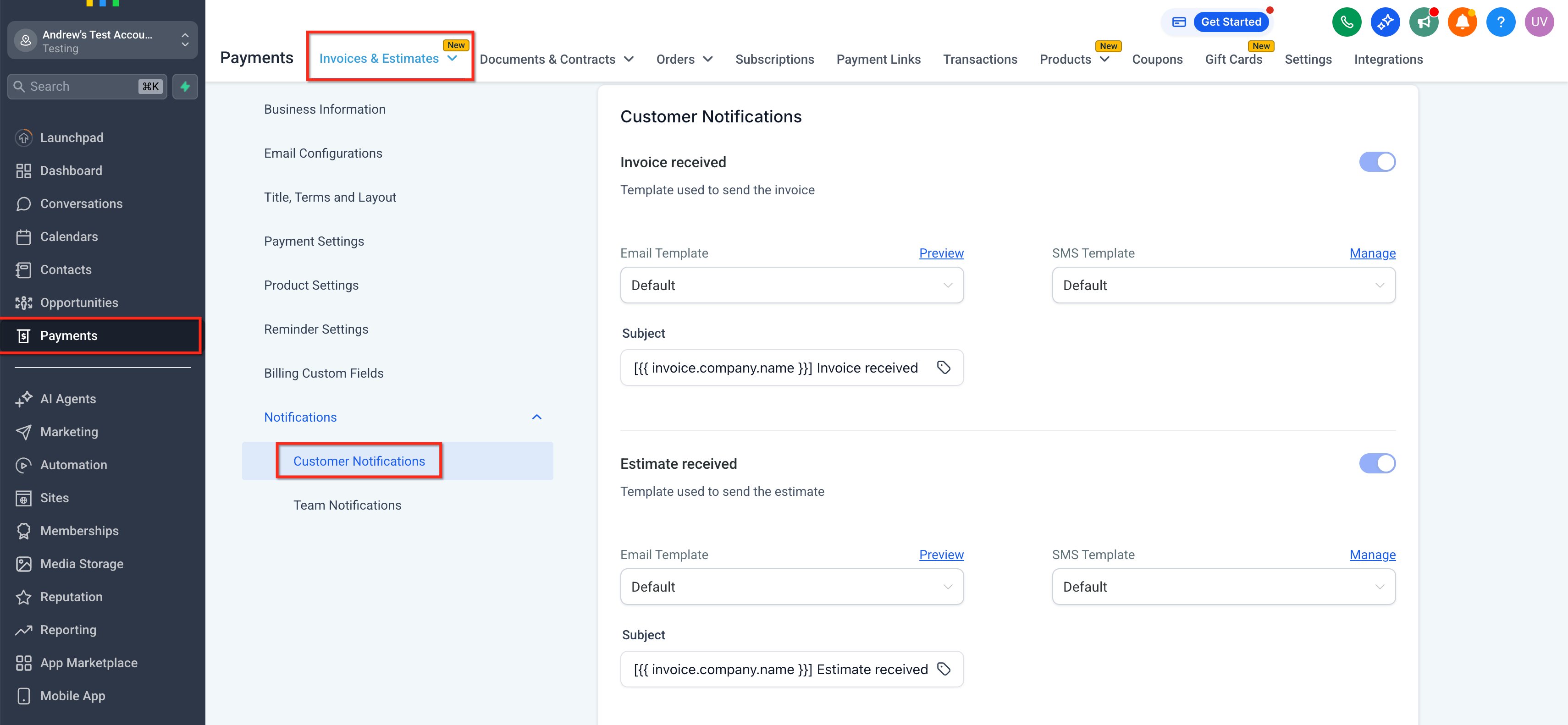 Yes. You can now customize, enable, or disable the Payment Schedule Received notification for invoices that include a payment schedule.