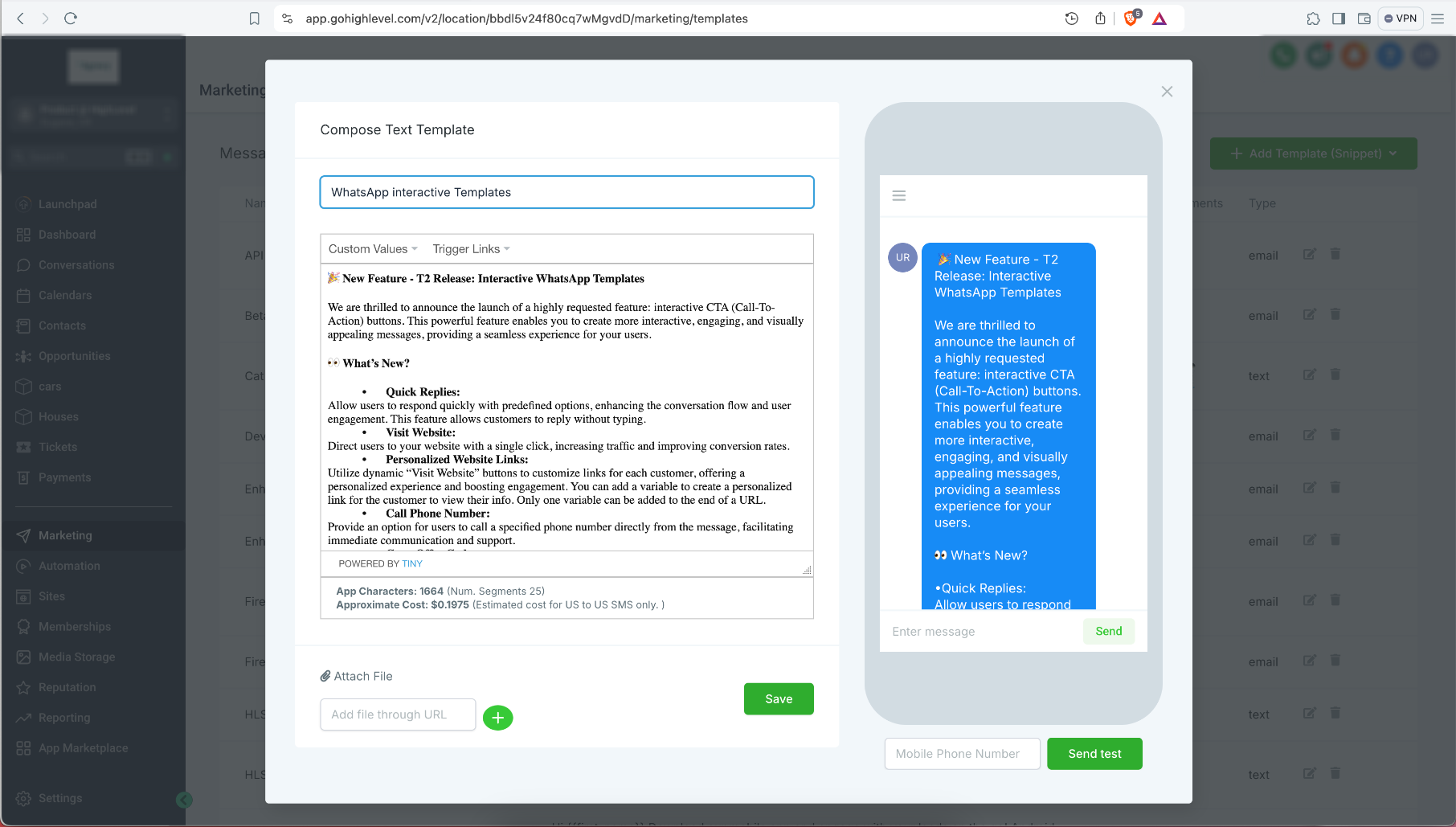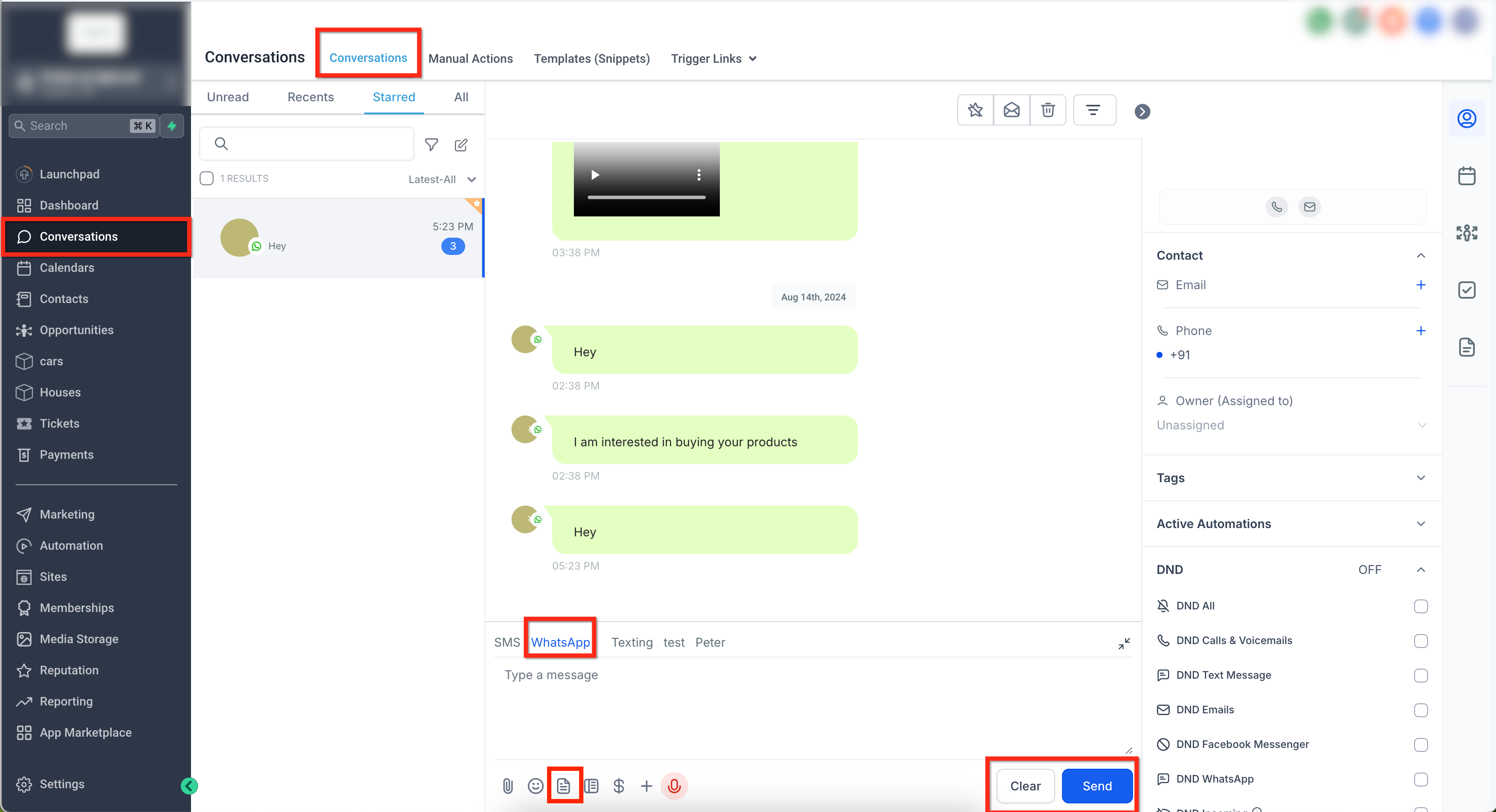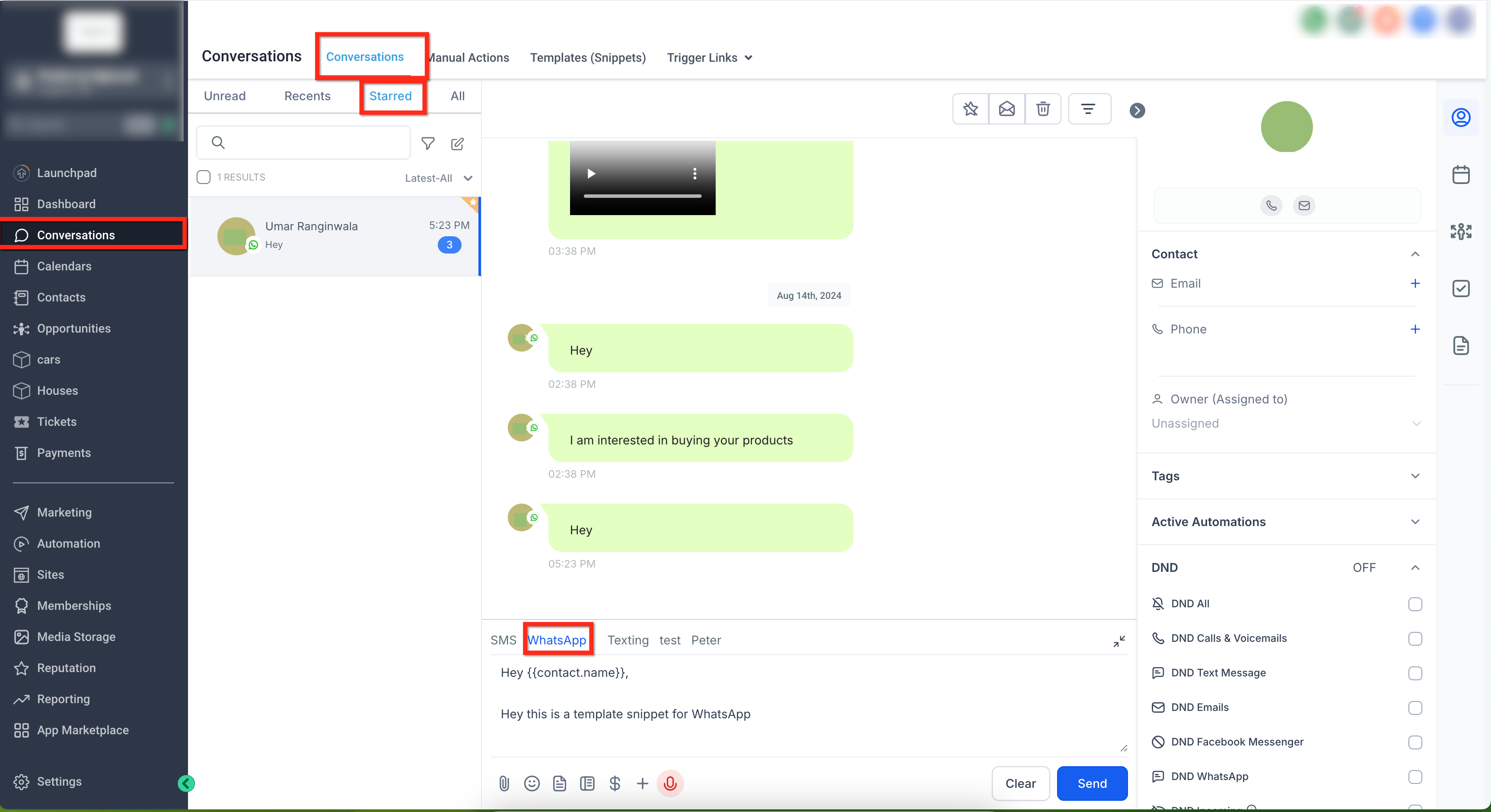 Snippets are pre-defined blocks of text or multimedia saved in HighLevel that you can insert into active WhatsApp conversations for fast, consistent responses.