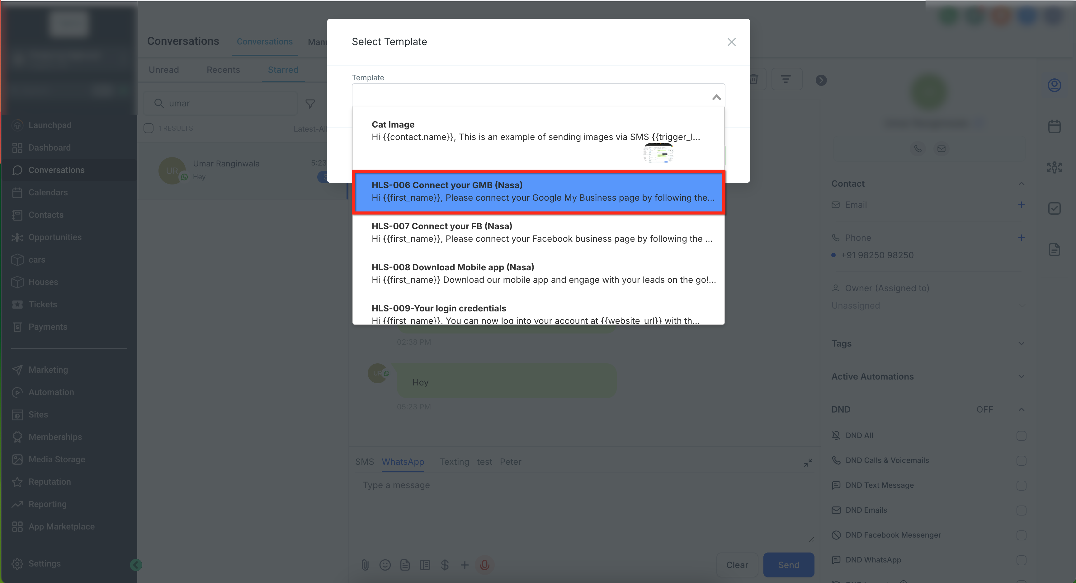Step 3 — Preview WhatsApp Templates at Send Time (Conversations & Bulk Actions)