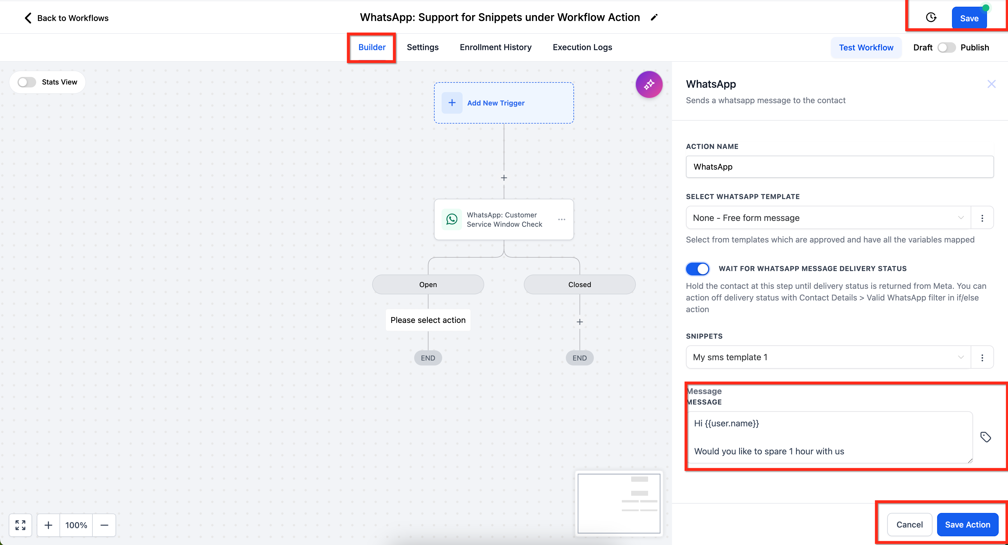 Step 5 — Send Snippets or Templates via Workflows