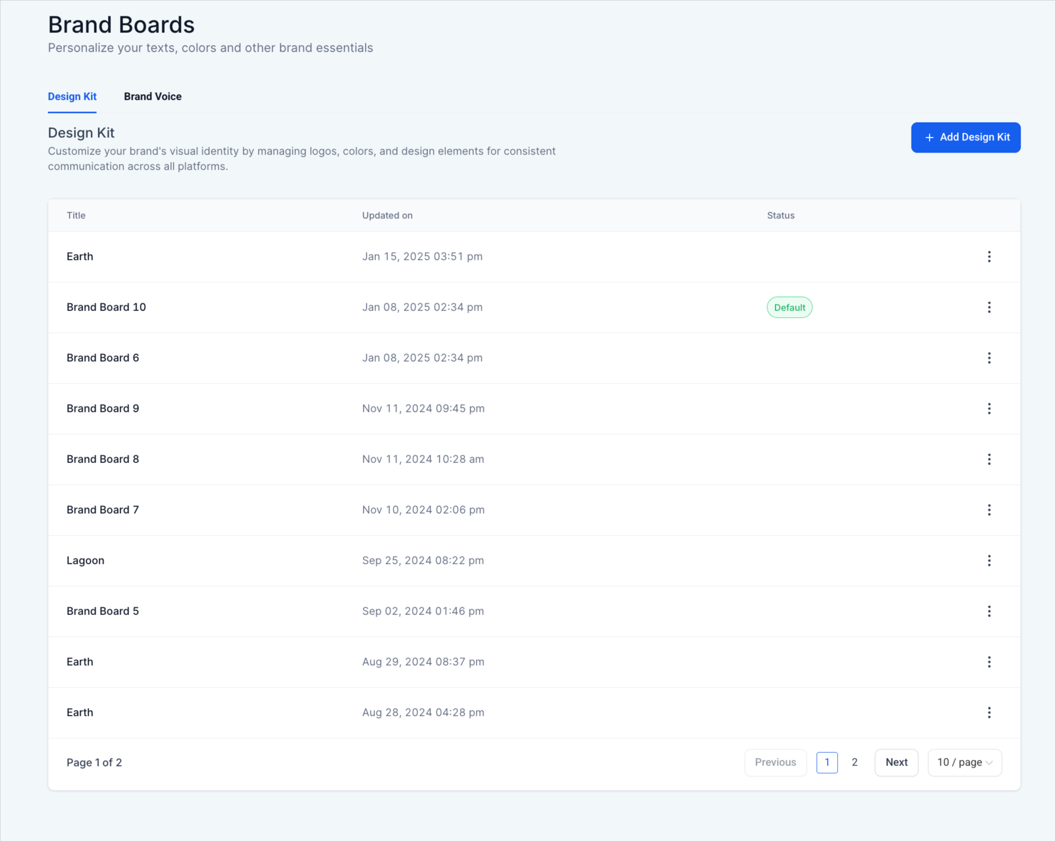 However, there may come a time when you need to update your Brand Board to reflect changes in your brand’s visual elements. Editing the Design Kit lets you refresh colors, swap logos, or adjust typography so future pages and emails use the latest brand assets, while existing content remains unchanged.
