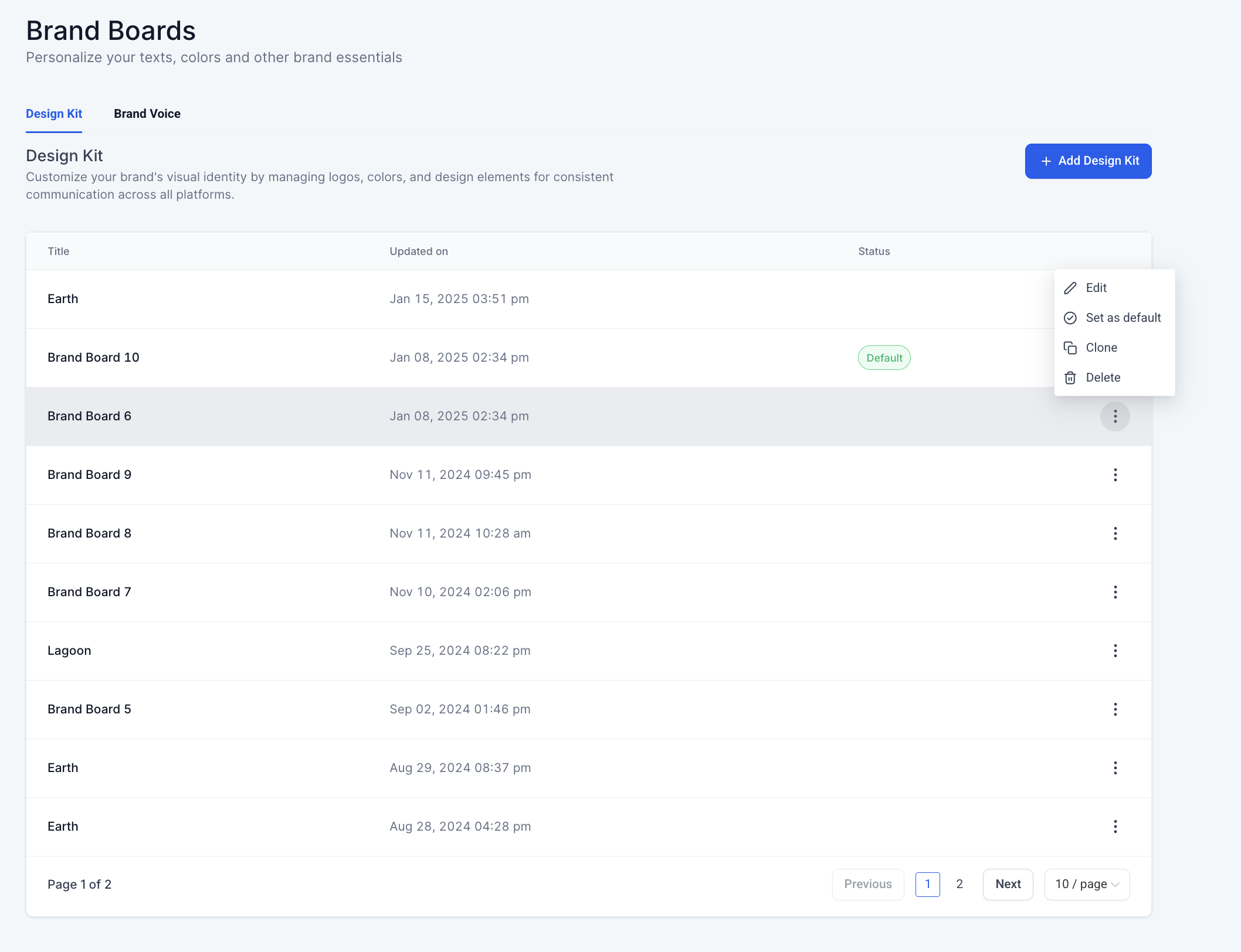 Click on the Brand Board that you would like to edit