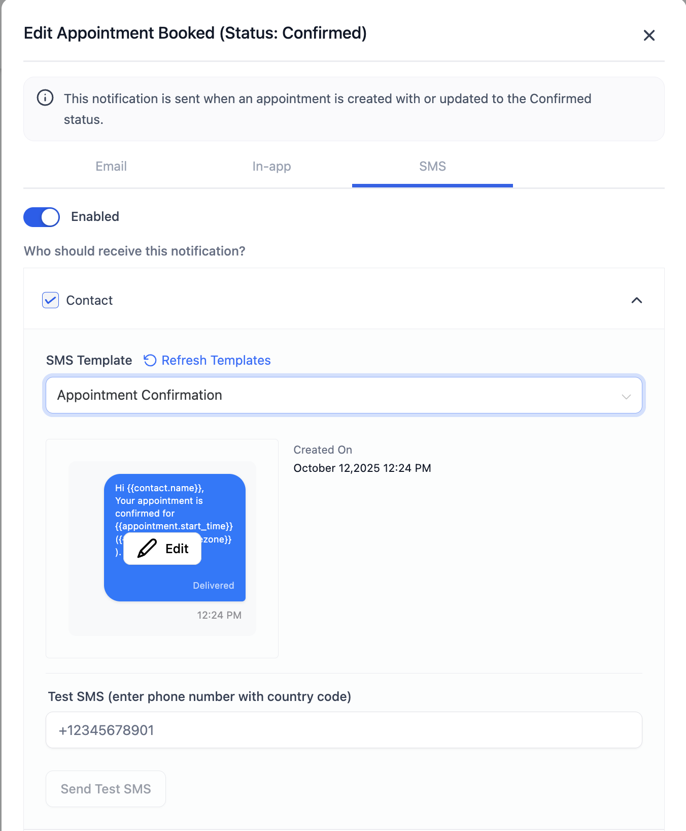 - Appointment Booked (Confirmed Status): Sent immediately when an appointment is booked with the confirmed status confirmed or when an appointment's status is updated to confirmed.
