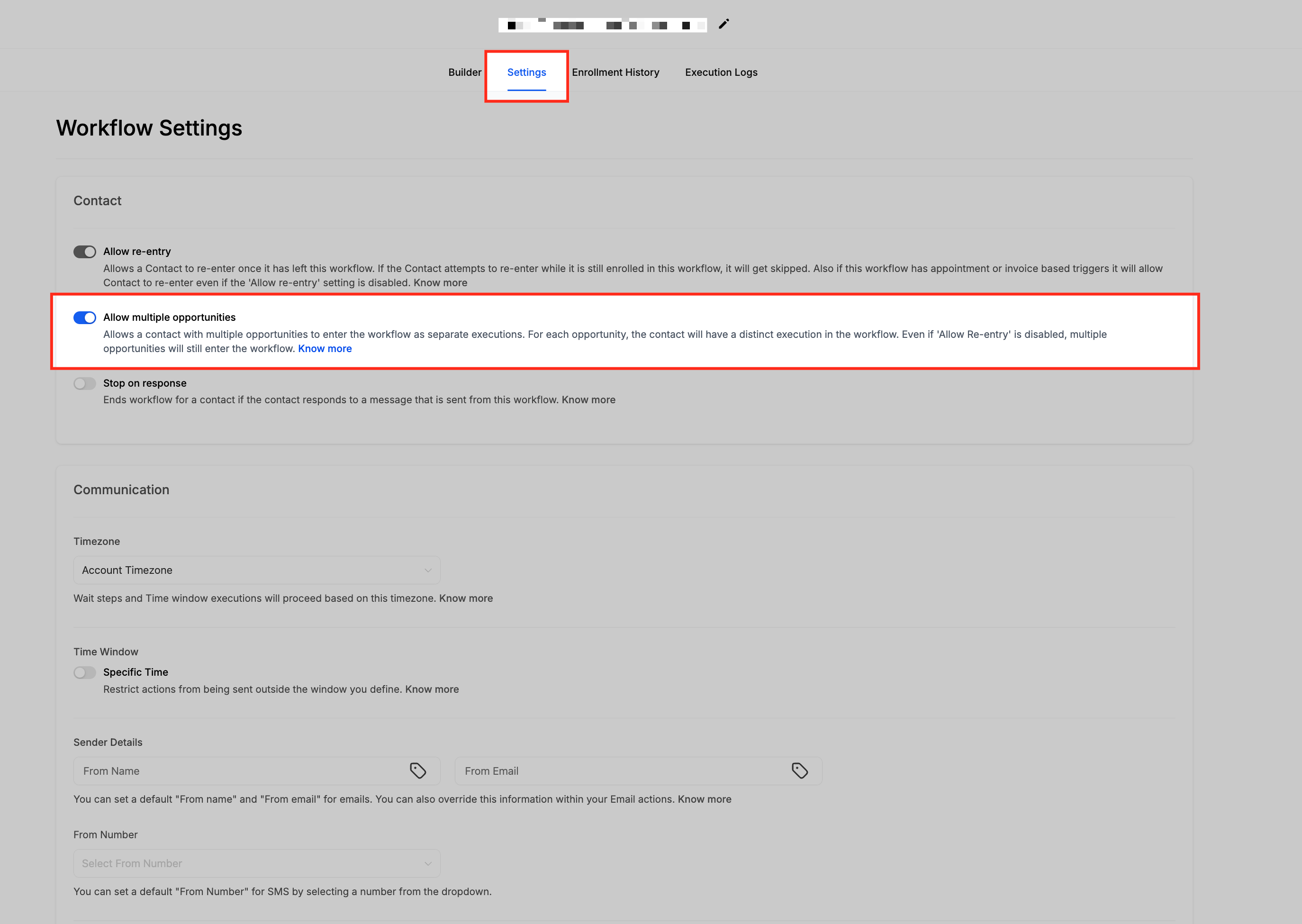 To ensure seamless automation for both primary purchases and upsells, it’s recommended to enable the Allow Multiple setting in workflow settings. This allows the workflow to trigger separately for each purchase event, including bump offers and upsells.