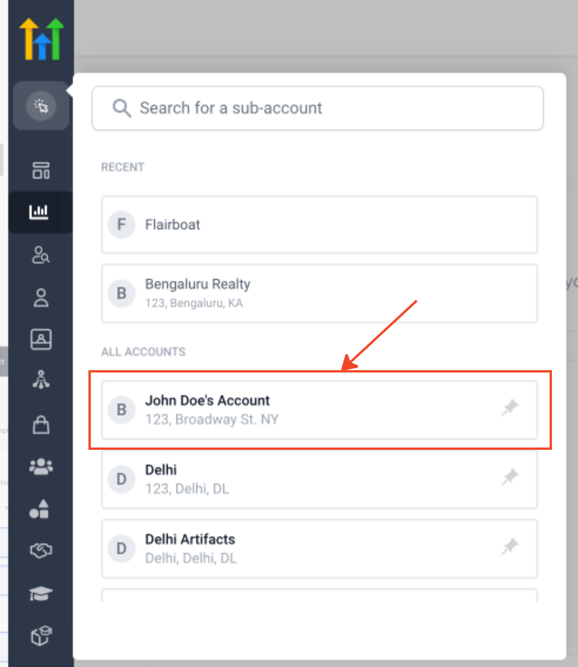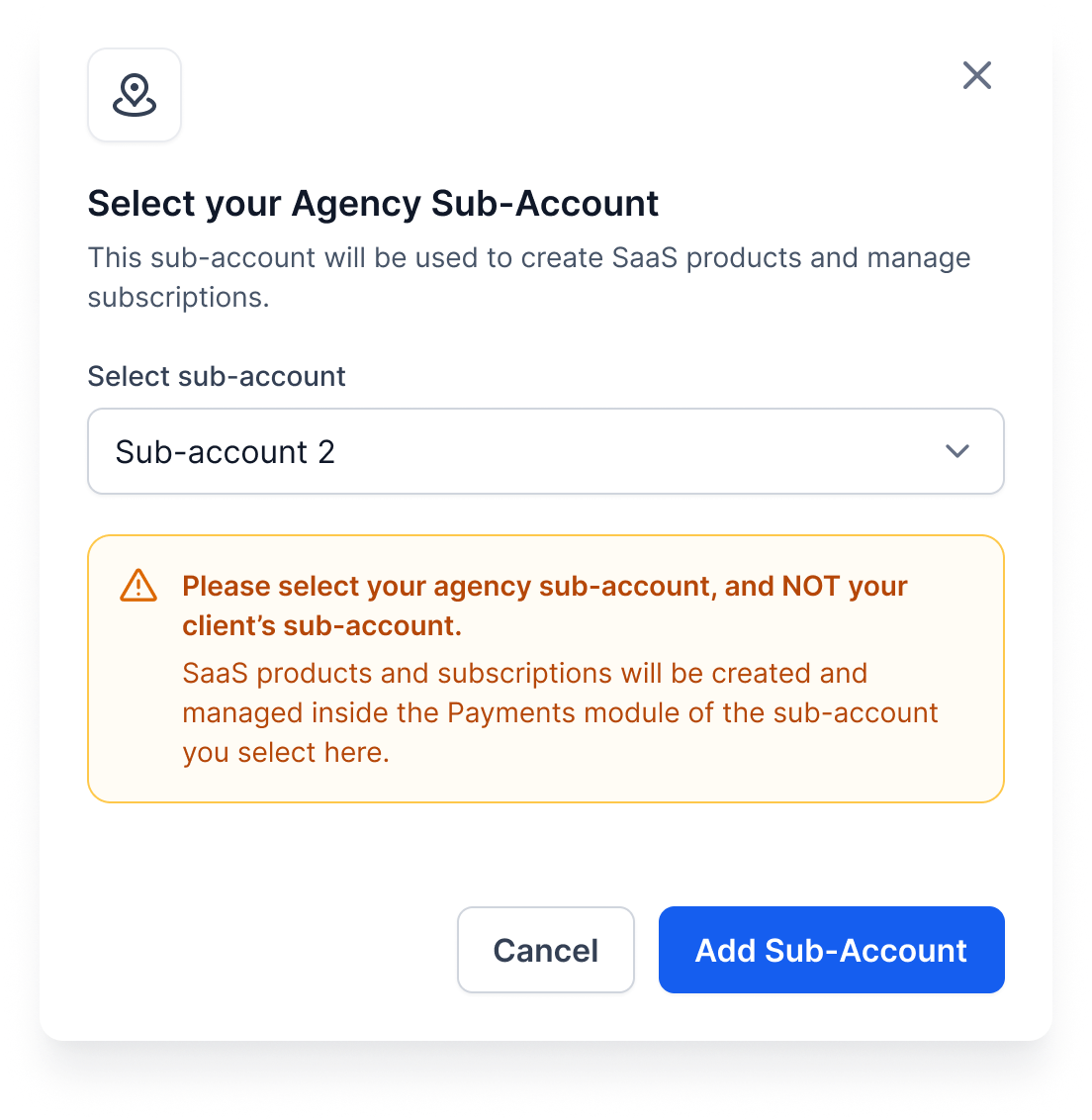 Select your Agency Sub-Account from the drop-down, and select 'Add Sub-Account'.