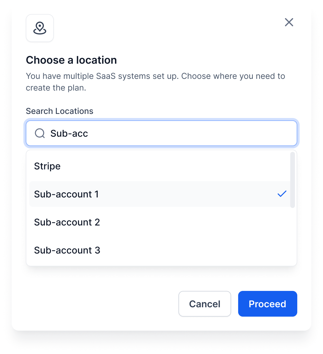 - You'll be redirected to the payments module of the selected sub-account where you can now configure your SaaS plan.