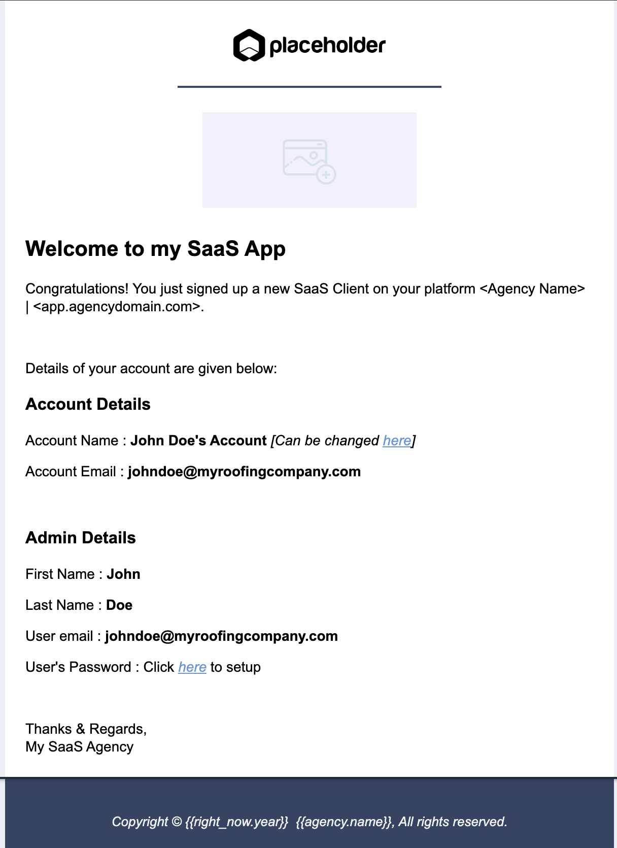 - Please refer this article for instructions on customizing the welcome email for your SaaS clients.