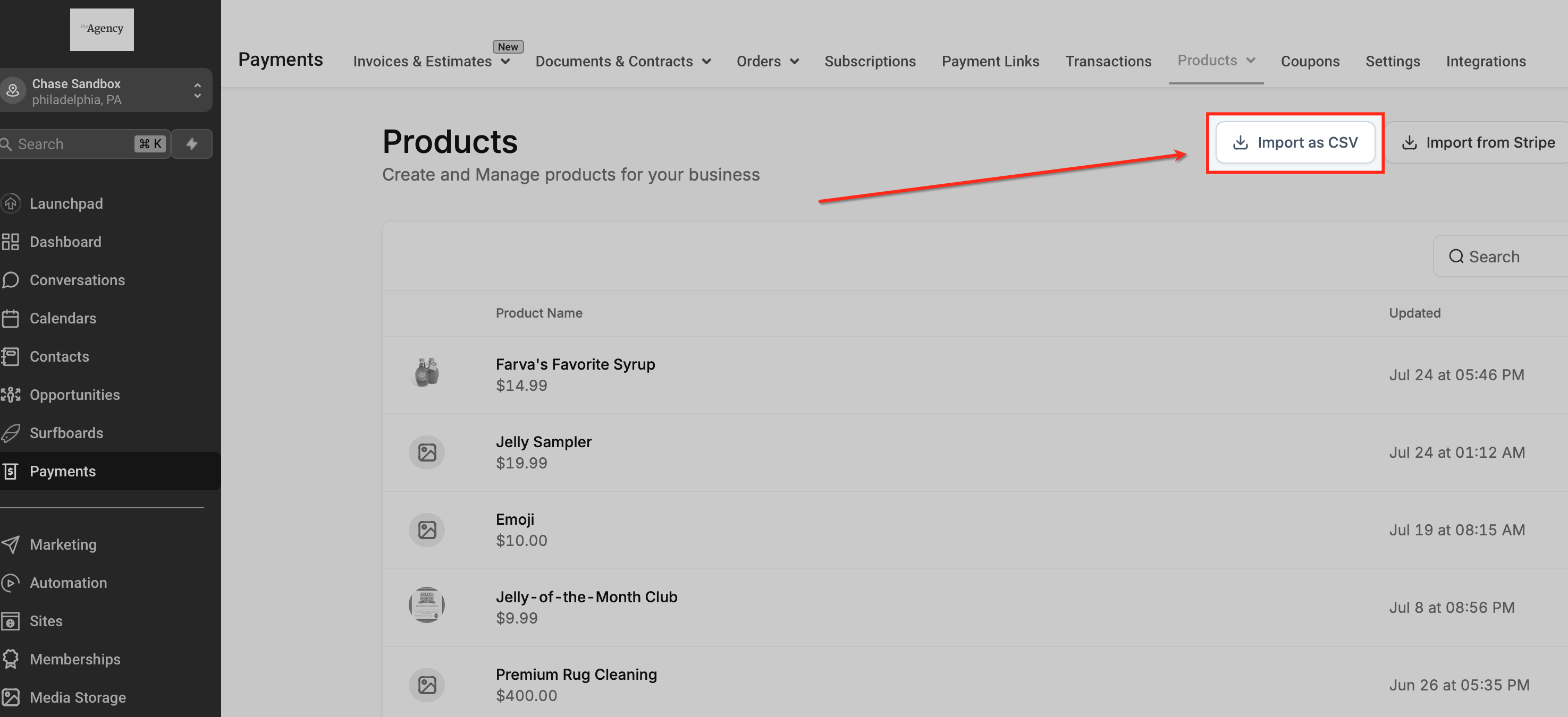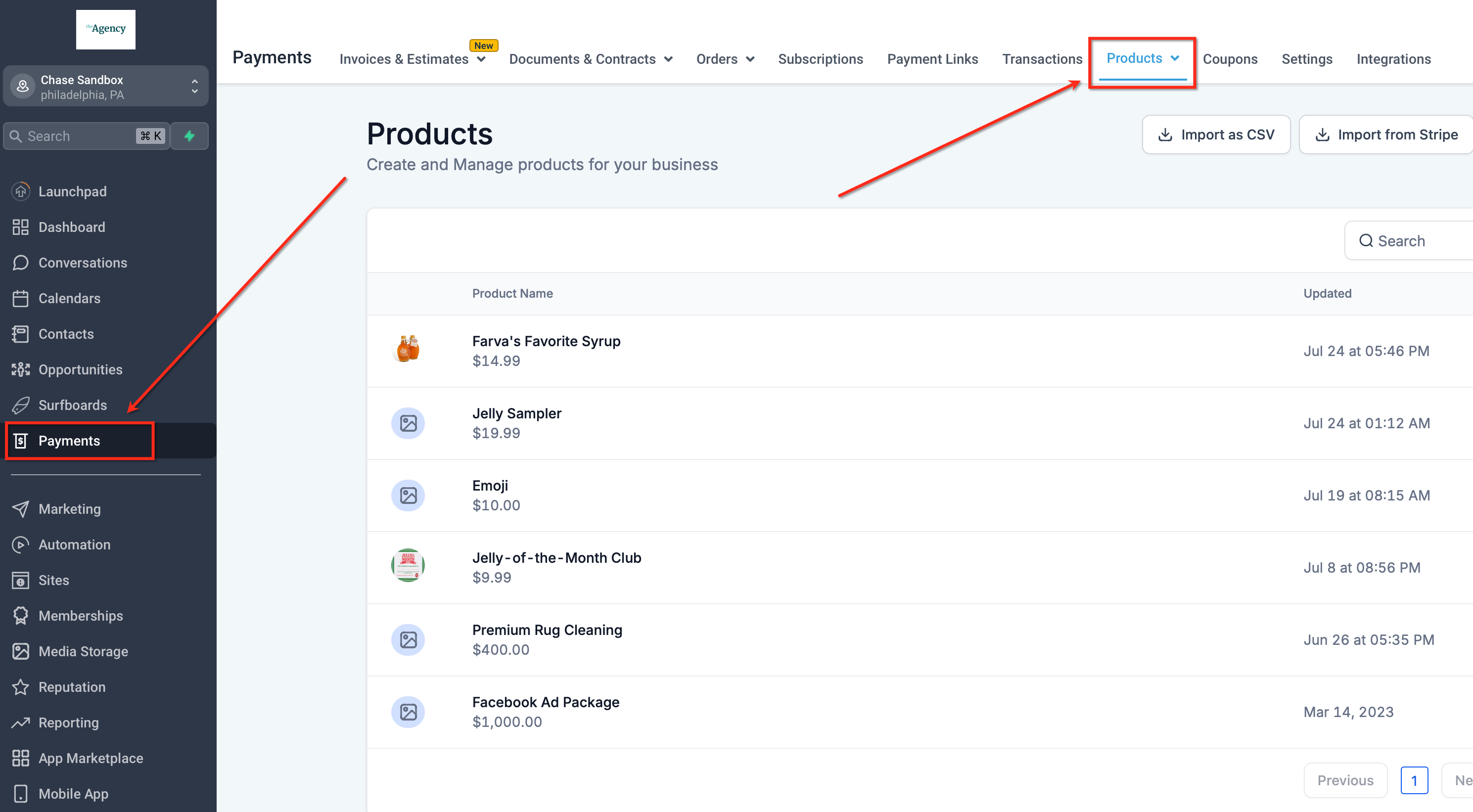 - Access to the Payments > Products page in HighLevel.