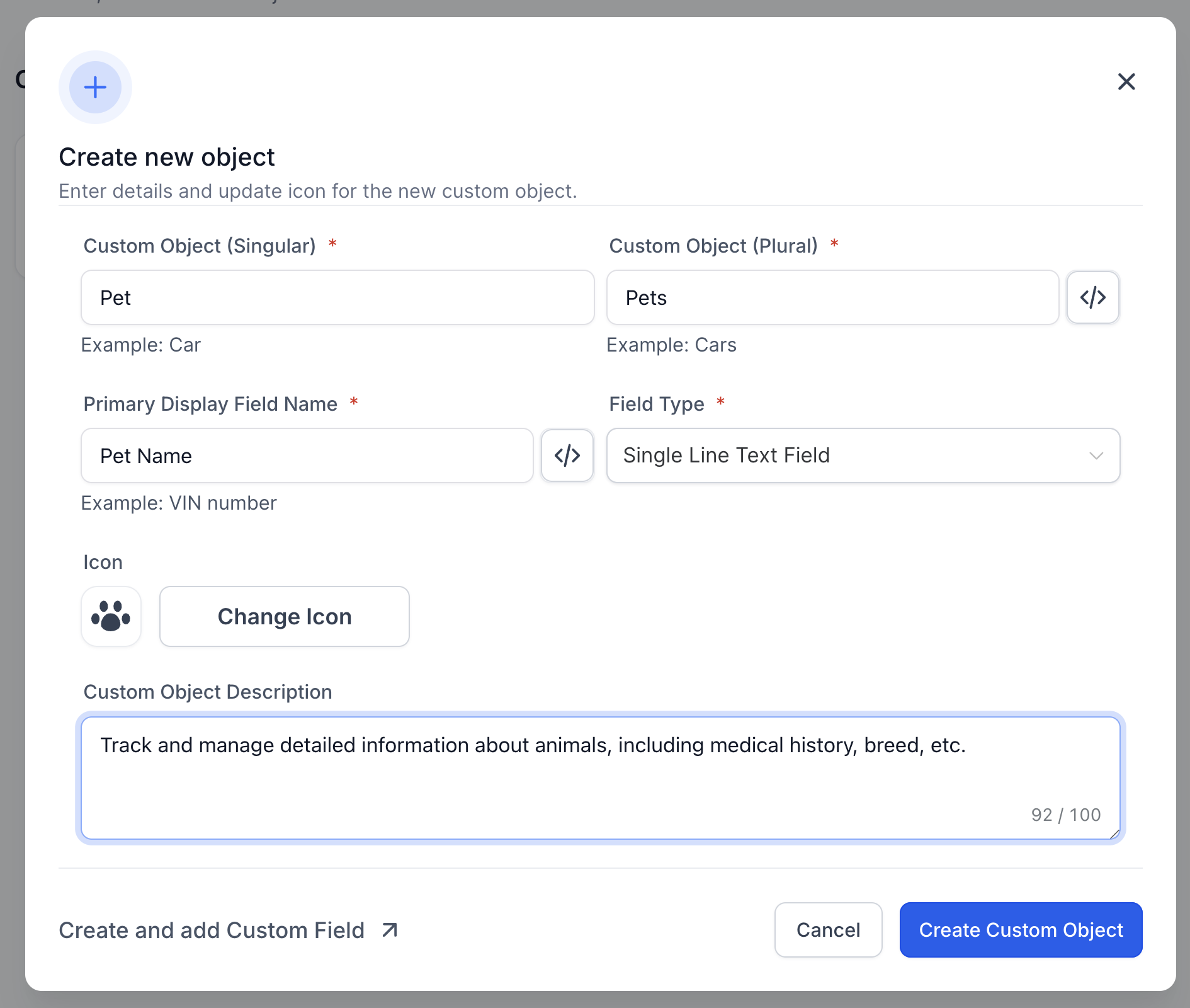 Choose an Icon and add a Description to help your team understand the object’s purpose.