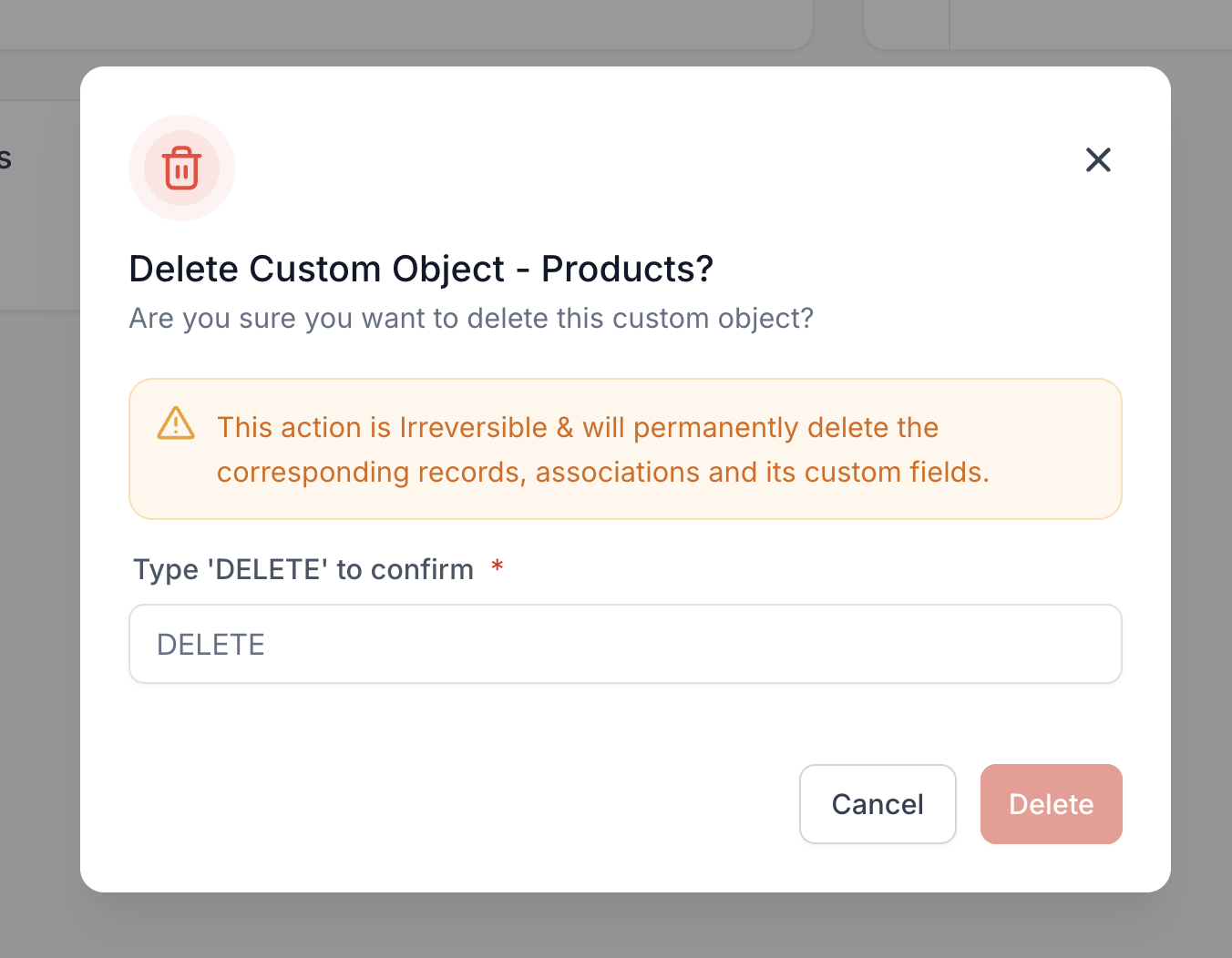 Imp: Deletion removes the object and all records, associations, workflows, and custom fields linked to it; this cannot be recovered.Frequently Asked Questions