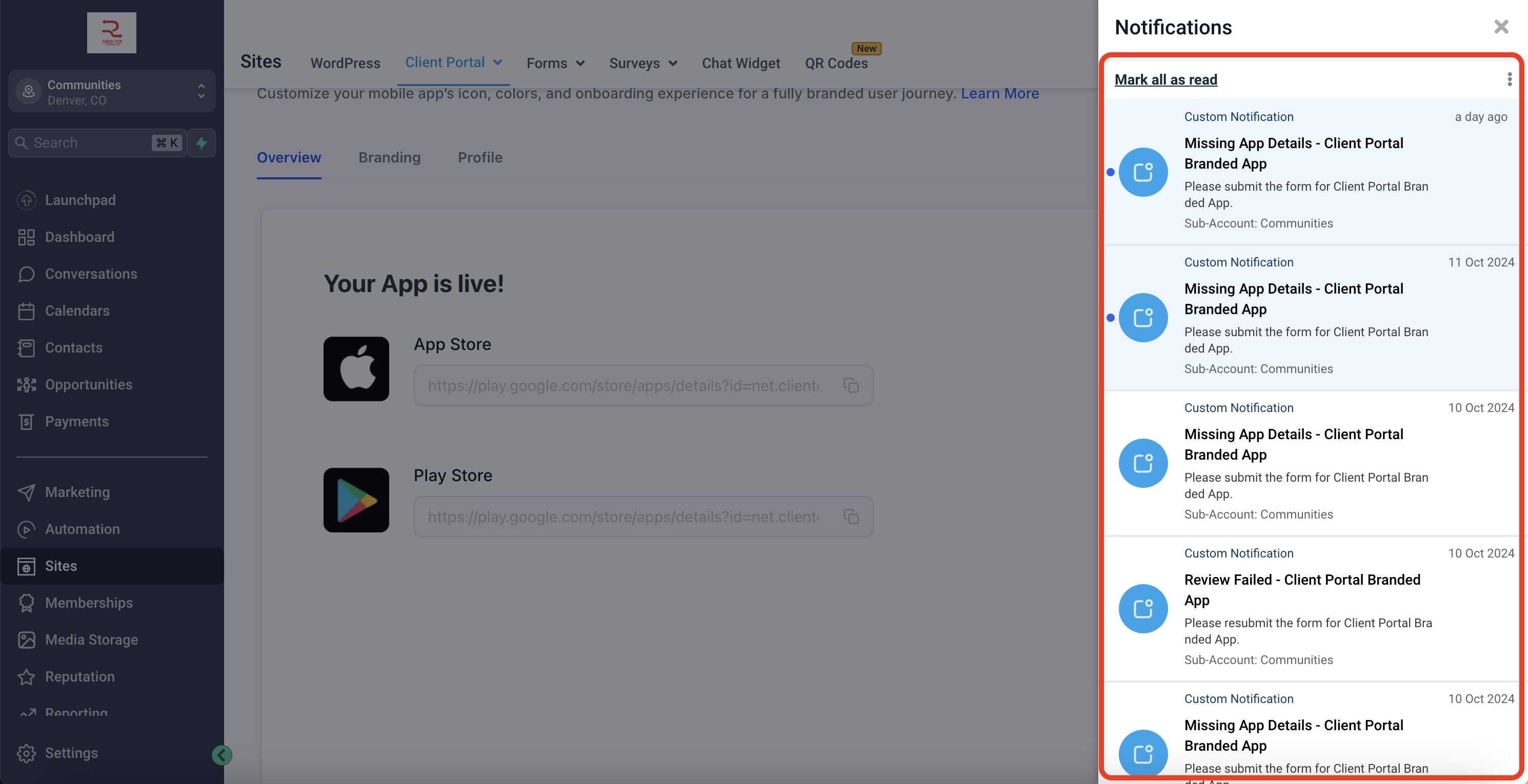Ready to bring your branded app to life? Head to Subaccount > Client Portal > Branded Mobile App to get started! In just a few clicks, you’ll be on your way to launching your own app. Let’s make it live!