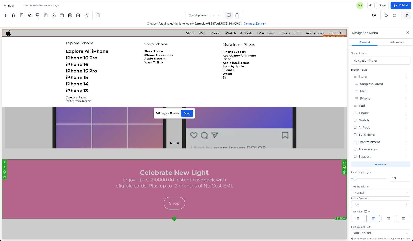 Use the live preview feature to see exactly how the mega menu will look on the live website, ensuring everything is in place before publishing.