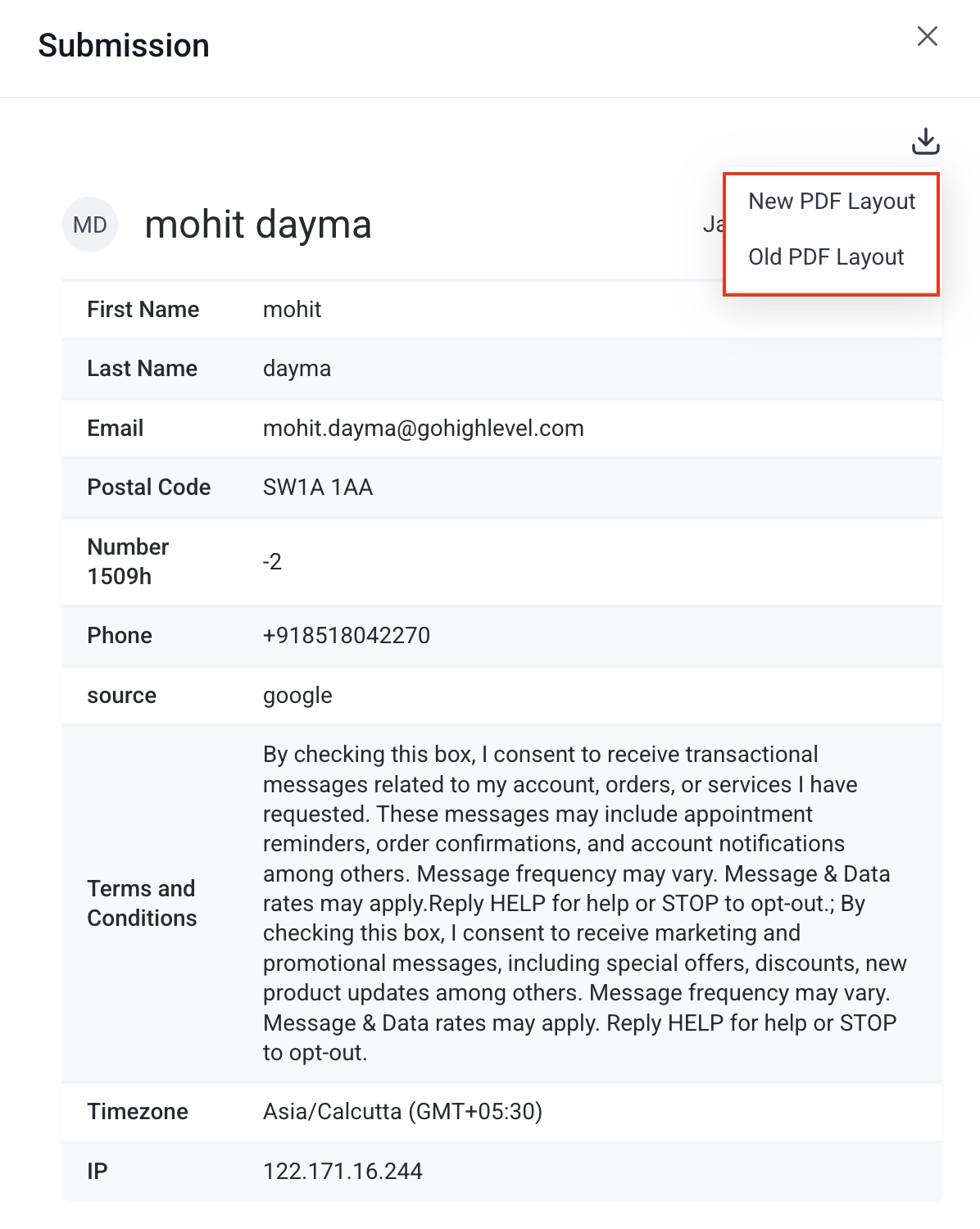 Previously, only 3 columns (such as name, email) were displayed. Now, all the columns of the form submissions are visible.