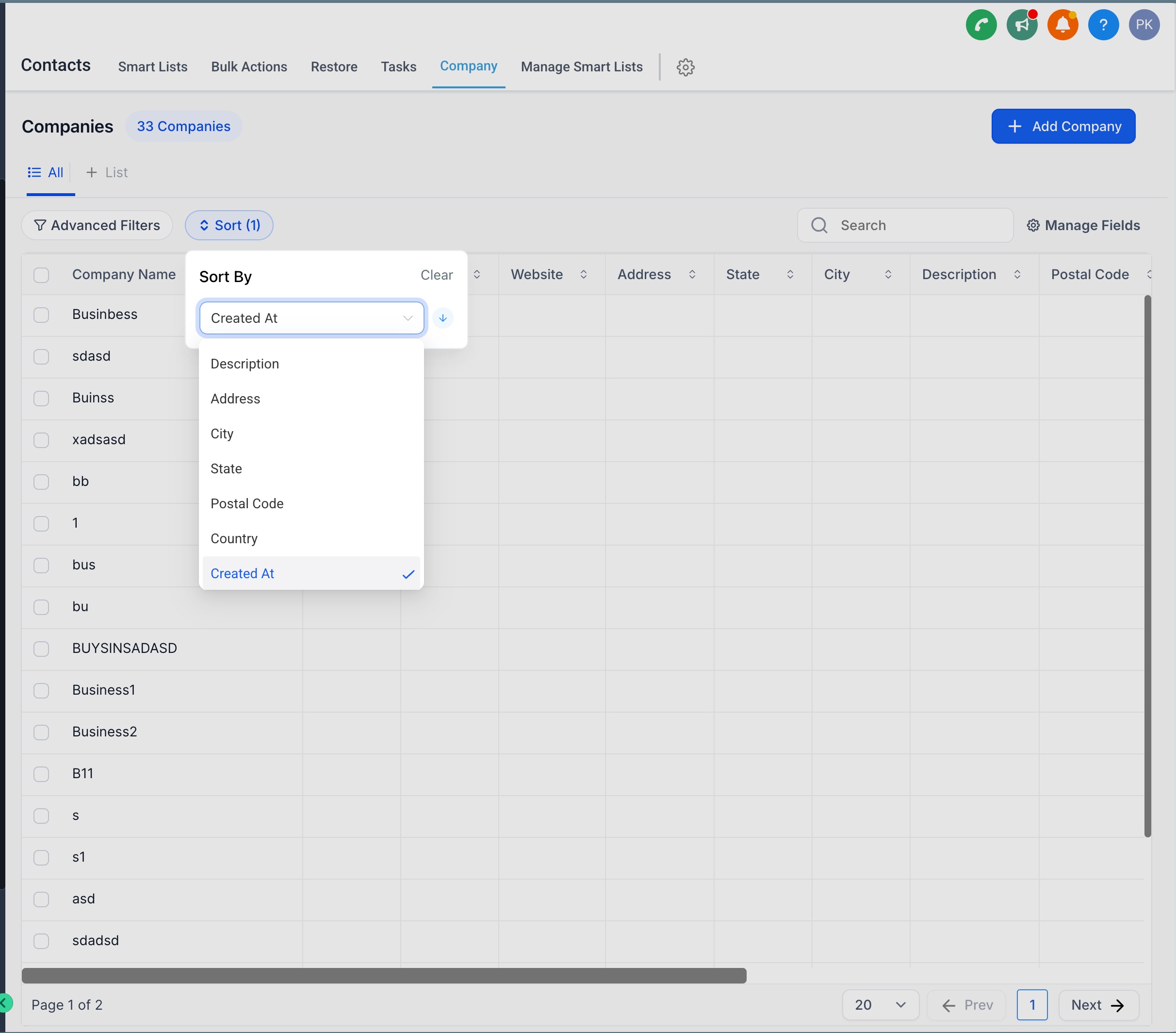 A: Yes—sorting is available on supported fields. Custom Objects also support sorting by custom fields from the Sort menu or by clicking a column header.