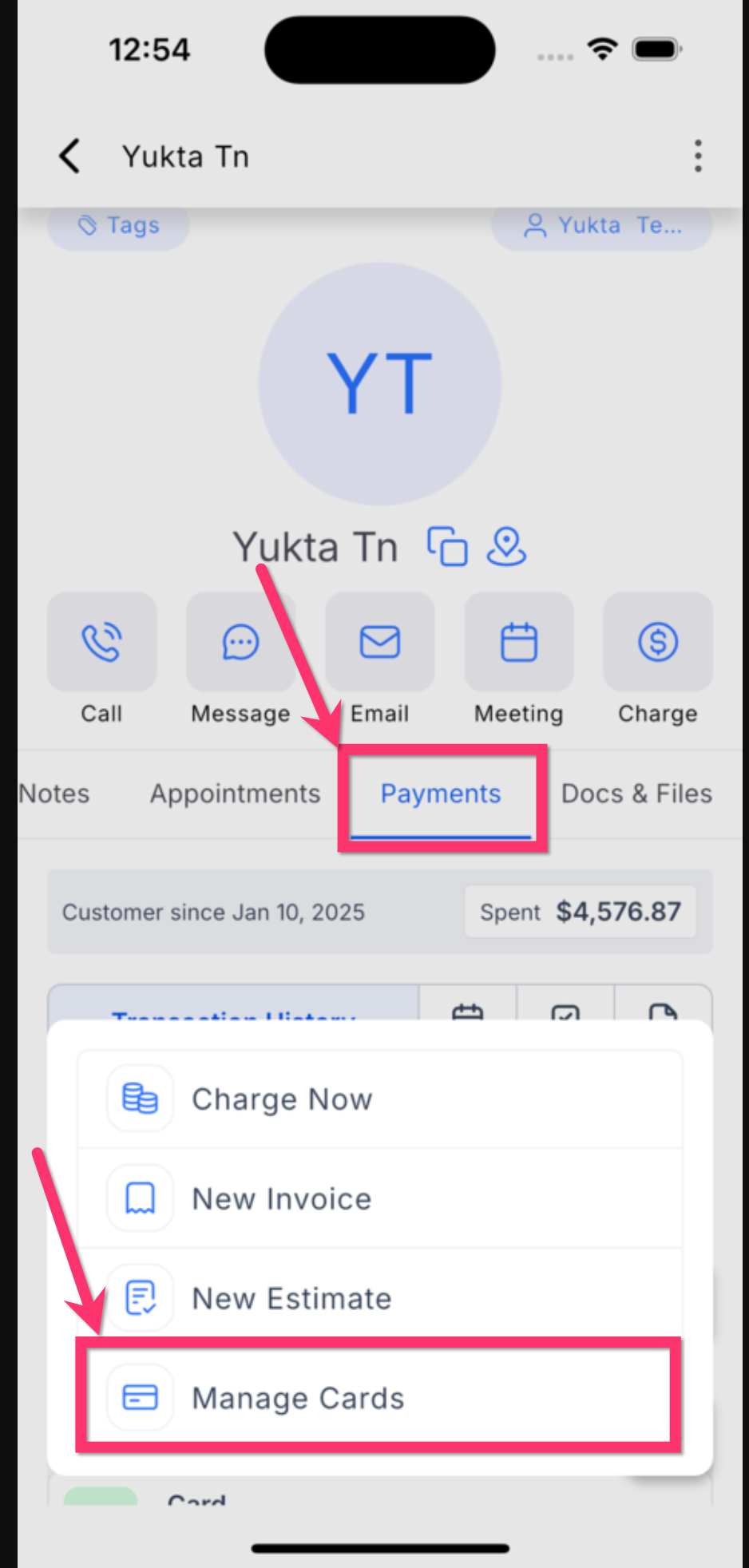 Saving a card from the contact record gives your team a faster way to support repeat purchases and follow-up charges without asking the customer to re-enter their payment details each time.