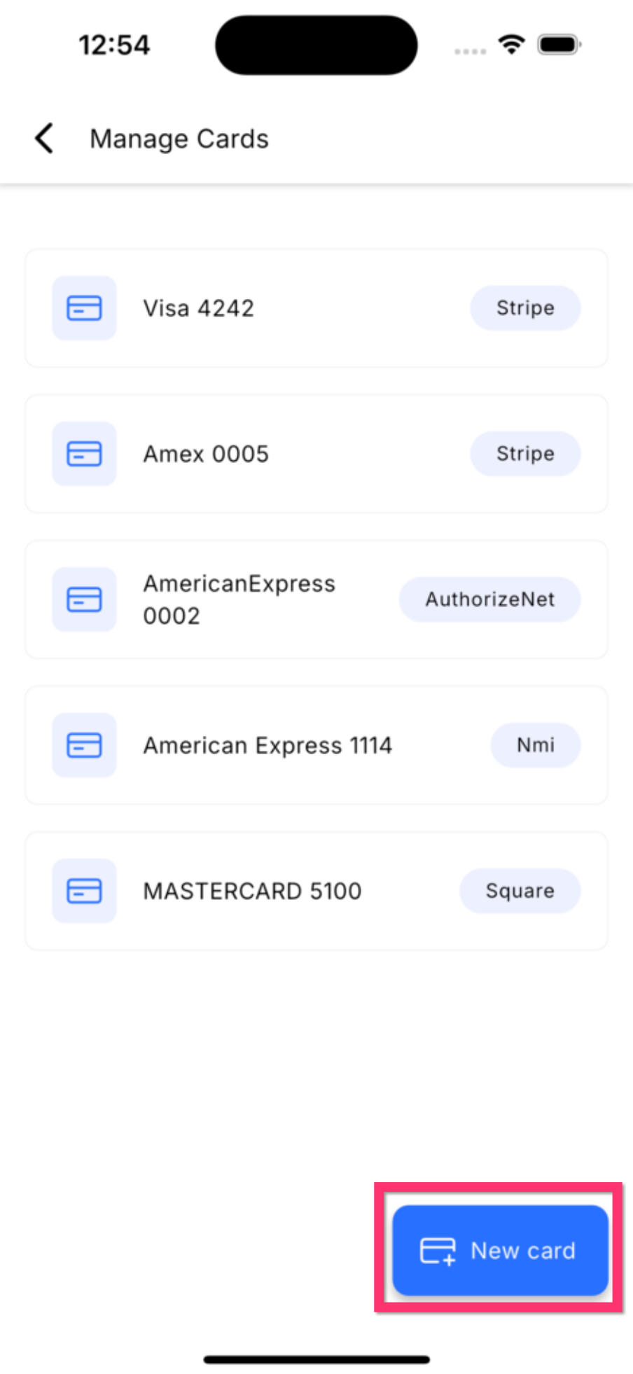 6. Tap New card.