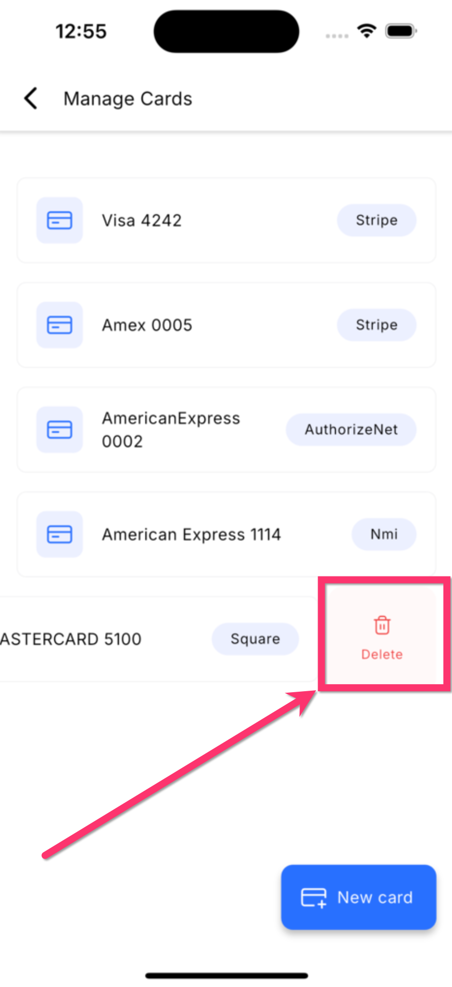 Removing old or unused cards helps keep customer payment methods accurate and easier to manage.