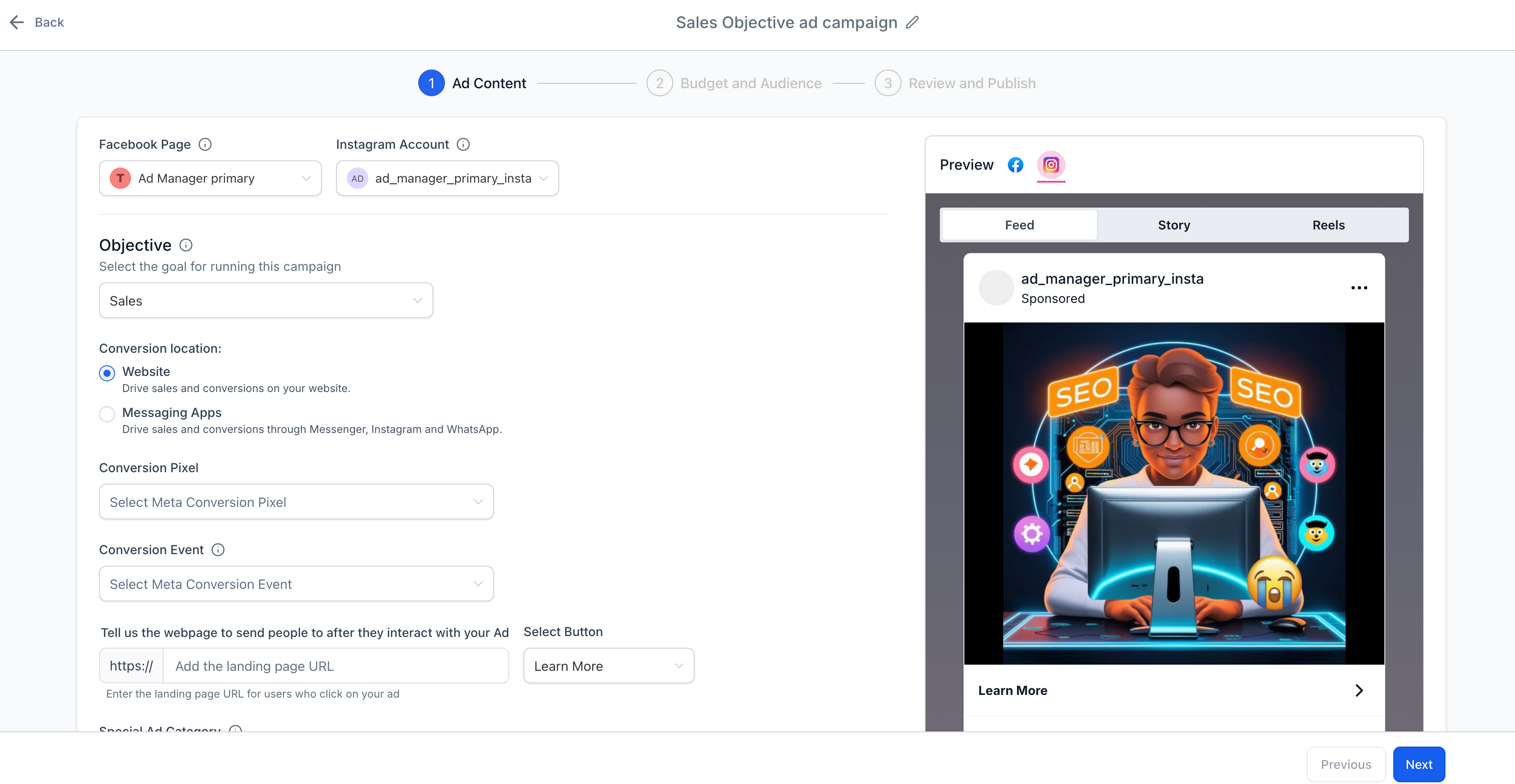 - Upload your creative assets and write compelling ad copy.