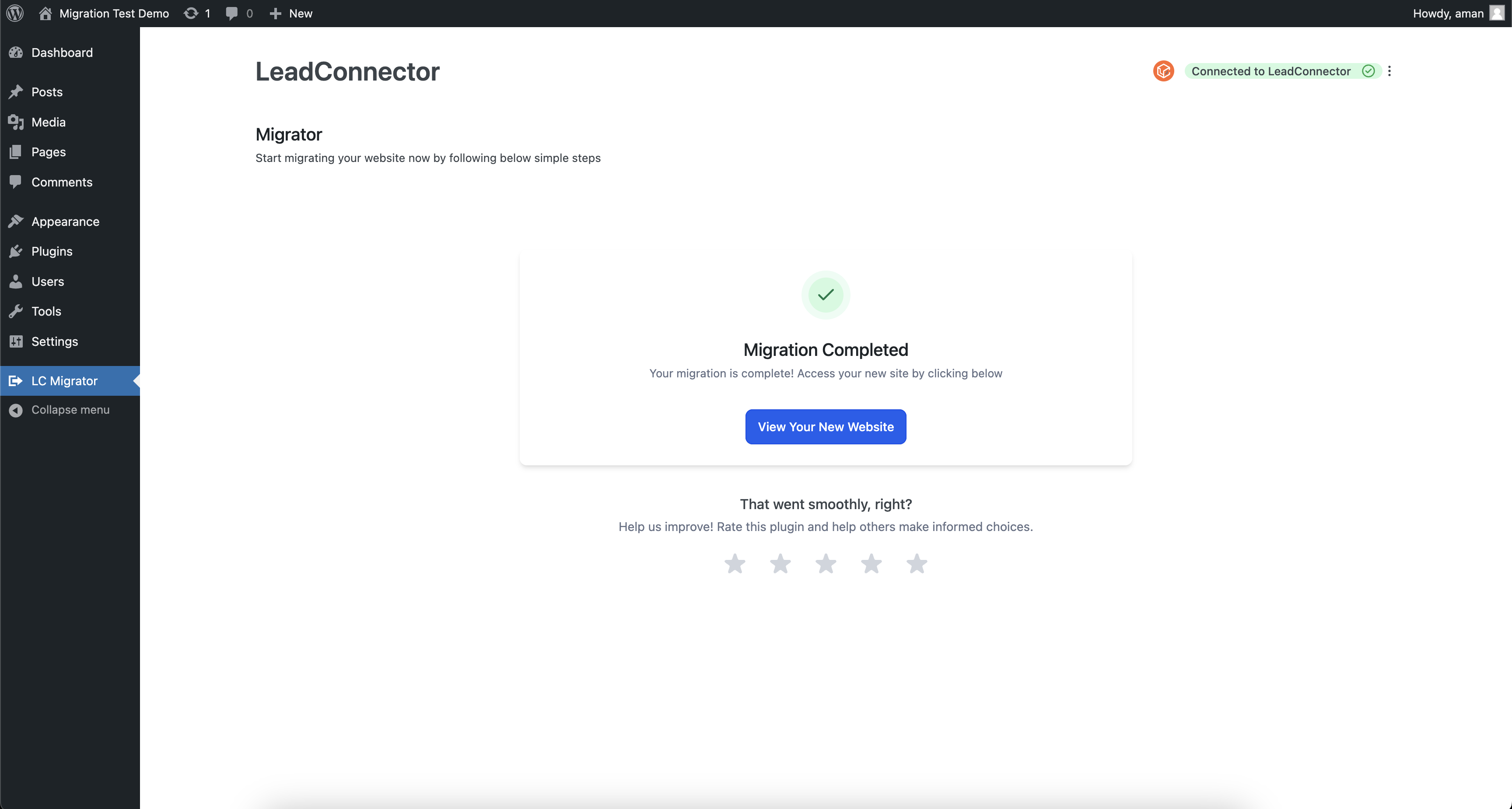 This will activate the LC Migrator plugin and get you ready for the next steps.