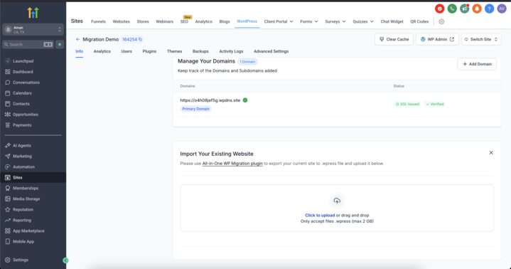 Welcome! As an agency, you have access to all migration options for helping your clients bring their WordPress websites into HighLevel hosting.