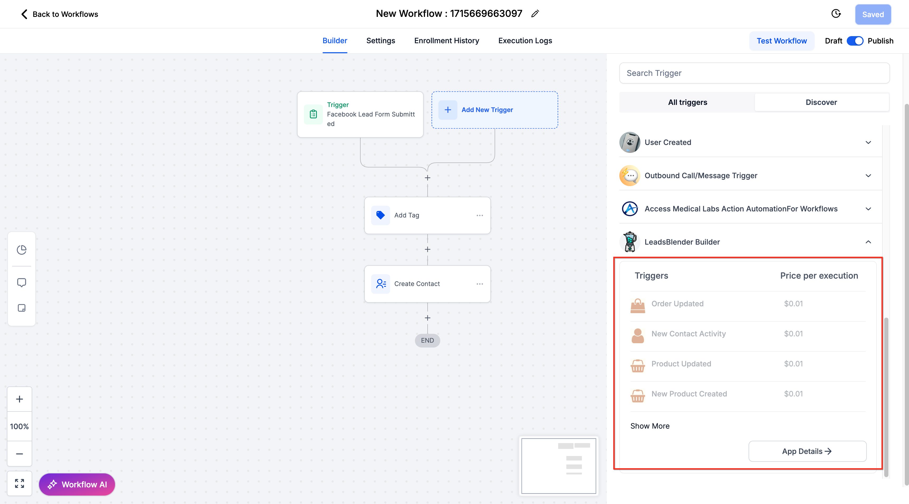 Where to configure: App → Pricing → enable Actions & Triggers and set the per‑execution price.