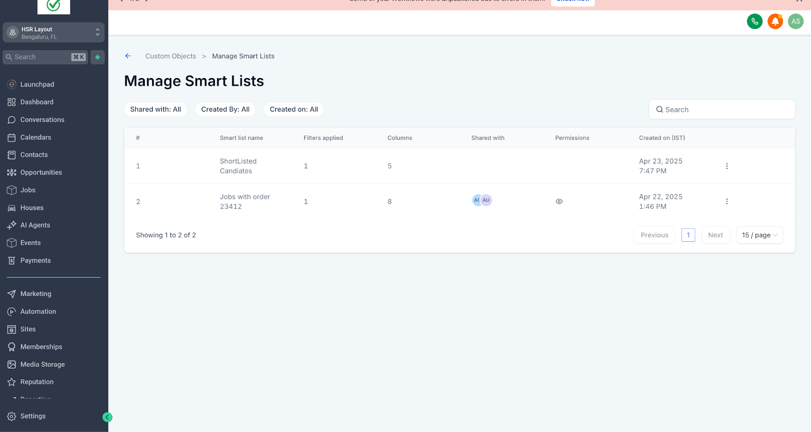 We're excited to introduce SmartLists for Custom Objects! Now you can easily create, save, manage, and share customized views of your custom object data with your entire team, simplifying your workflow and improving collaboration