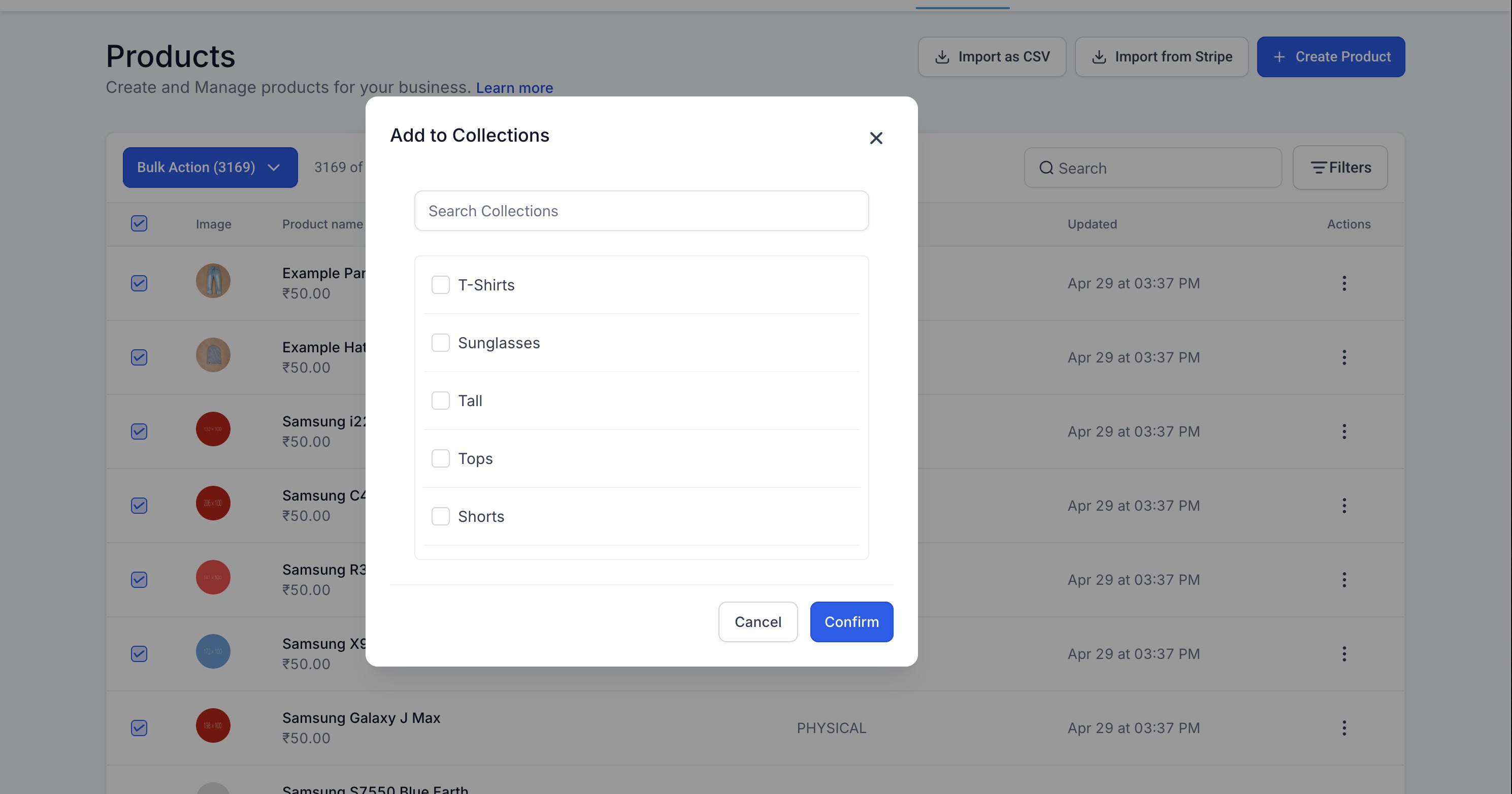 The Bulk Actions feature allows store owners to efficiently manage large sets of products from a single interface. You can now select multiple products and apply key updates across store visibility, pricing, collections, and more in a only few clicks! This is ideal for large catalogs or frequent price/stock updates.