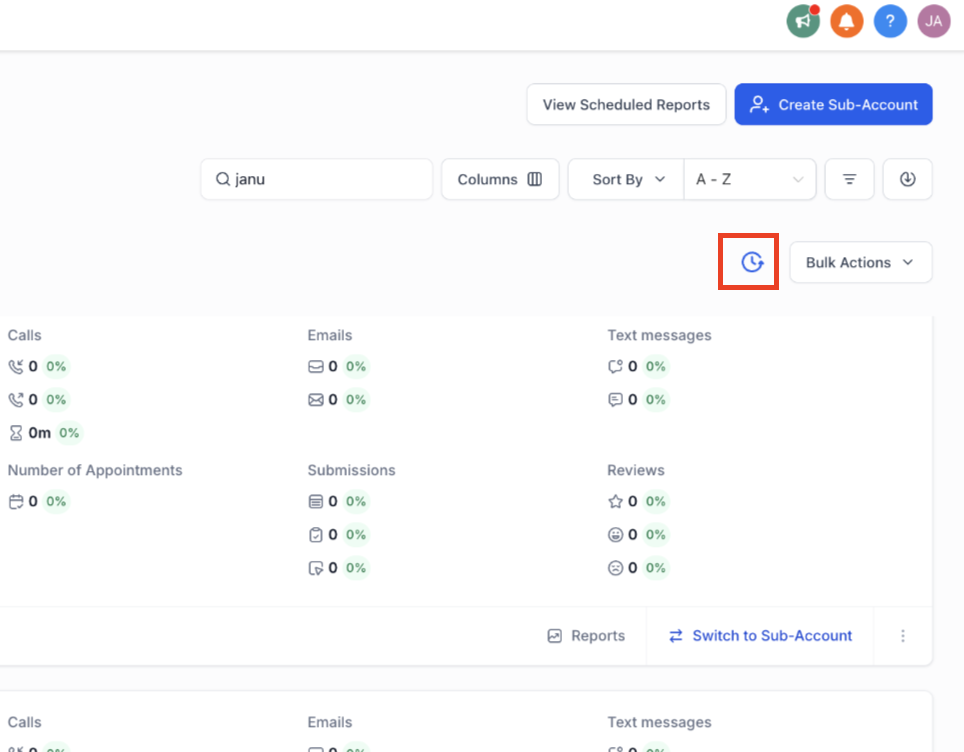 - Navigate to the Bulk Action History screen under the Sub-Accounts section.