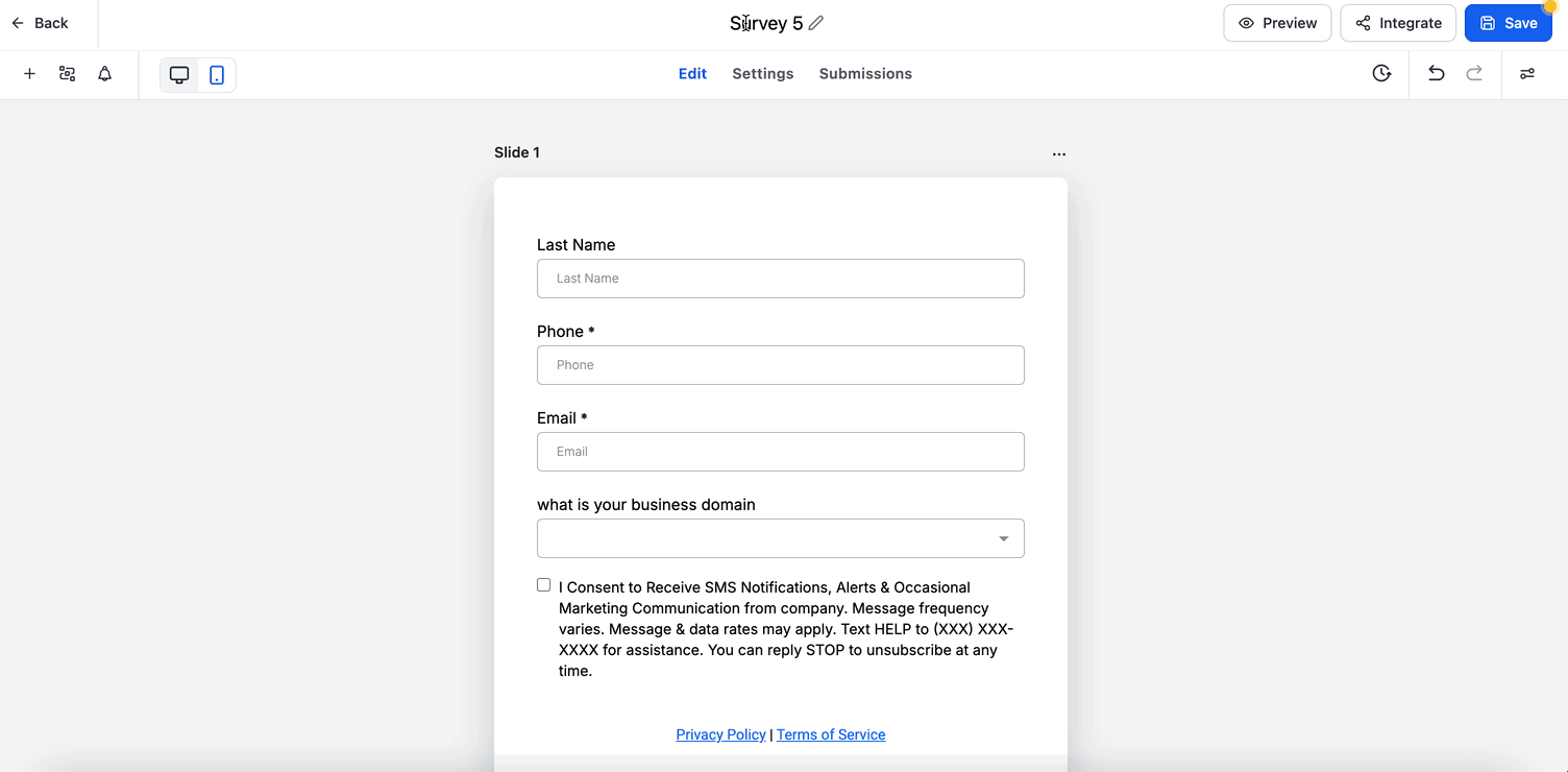 Show/Hide FieldsDynamically show or hide questions or slides.