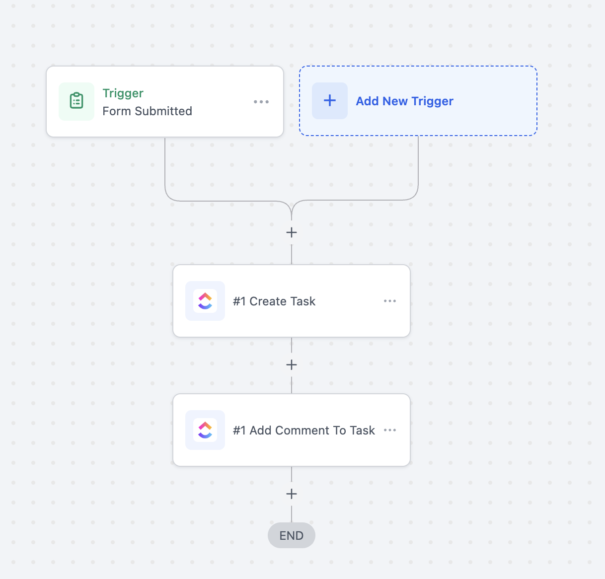 Actions: Create Task (ClickUp), Add Task Comment (ClickUp)