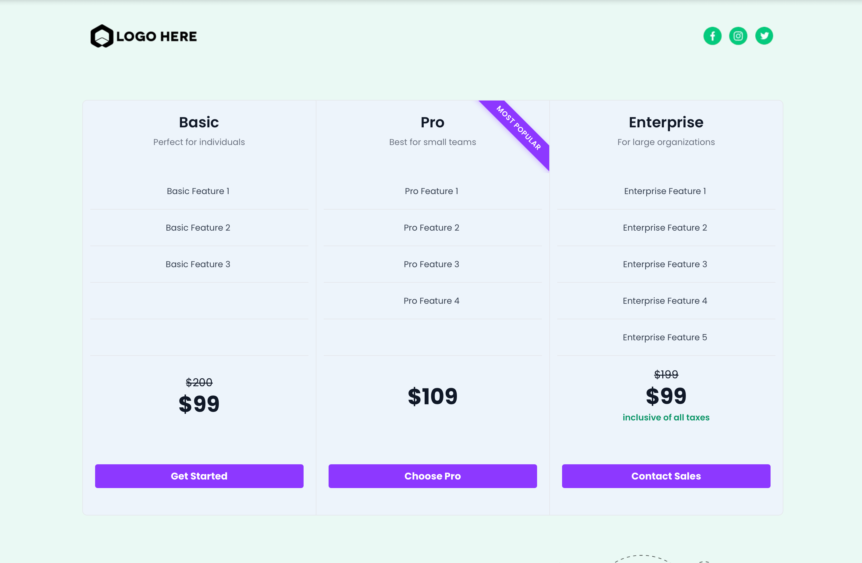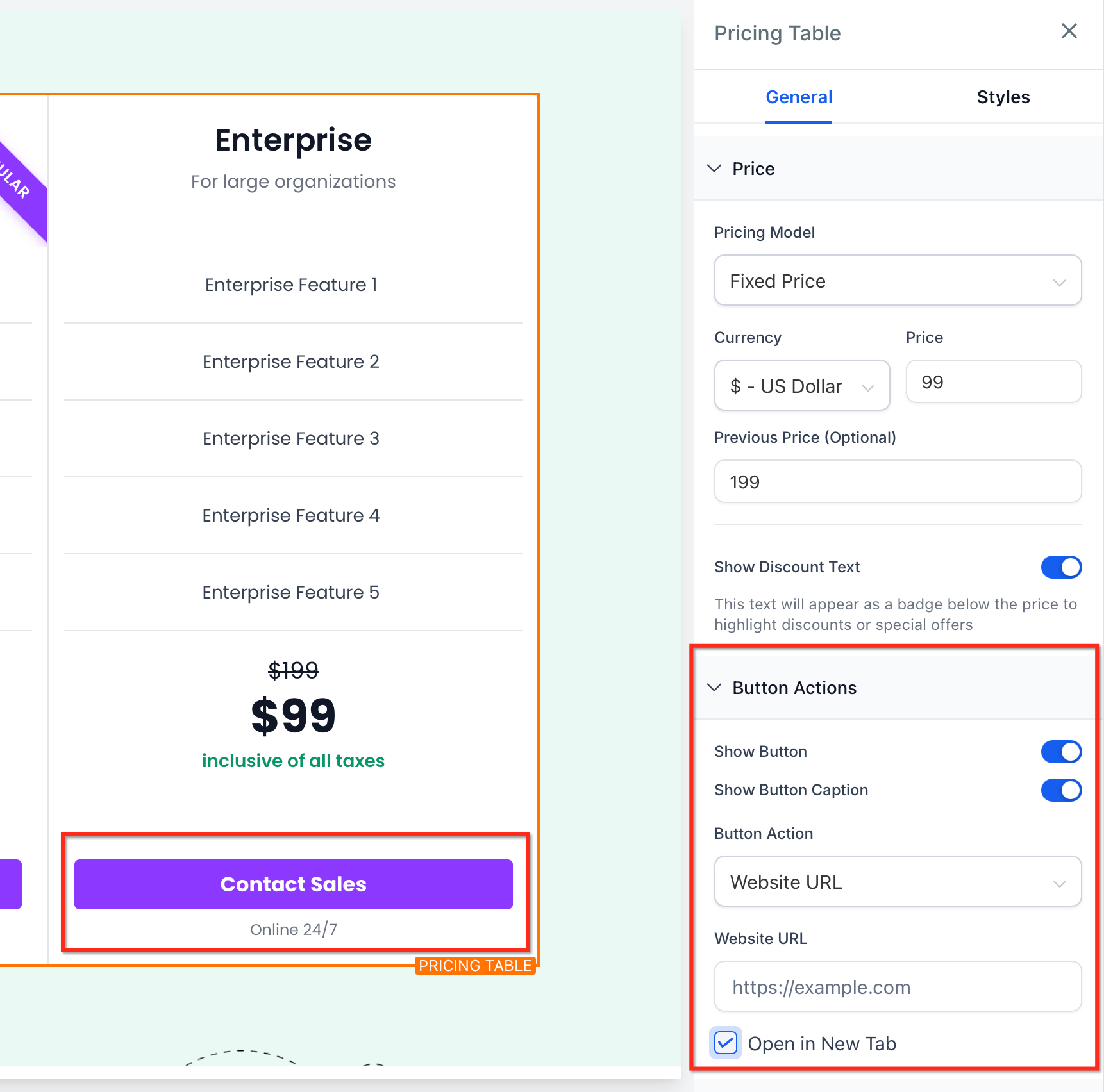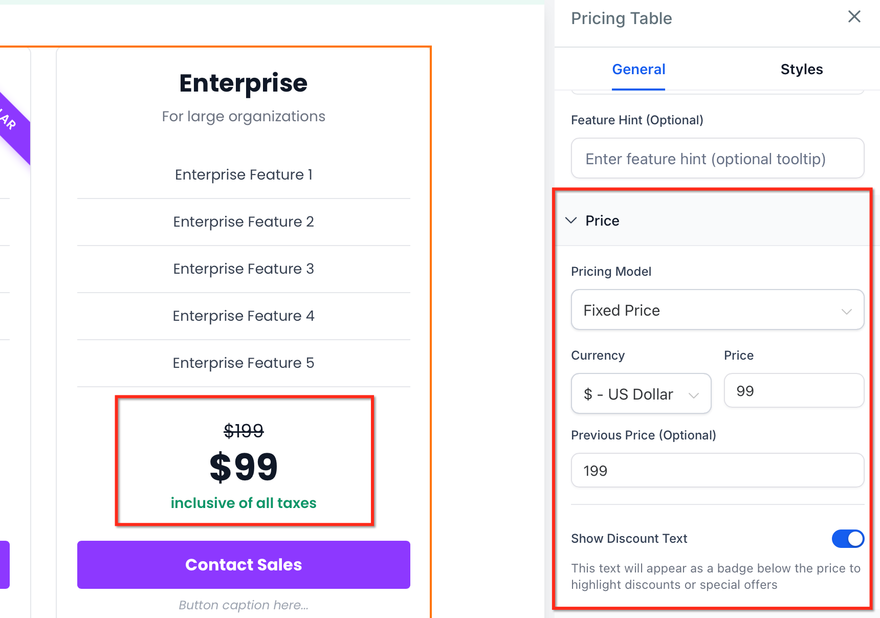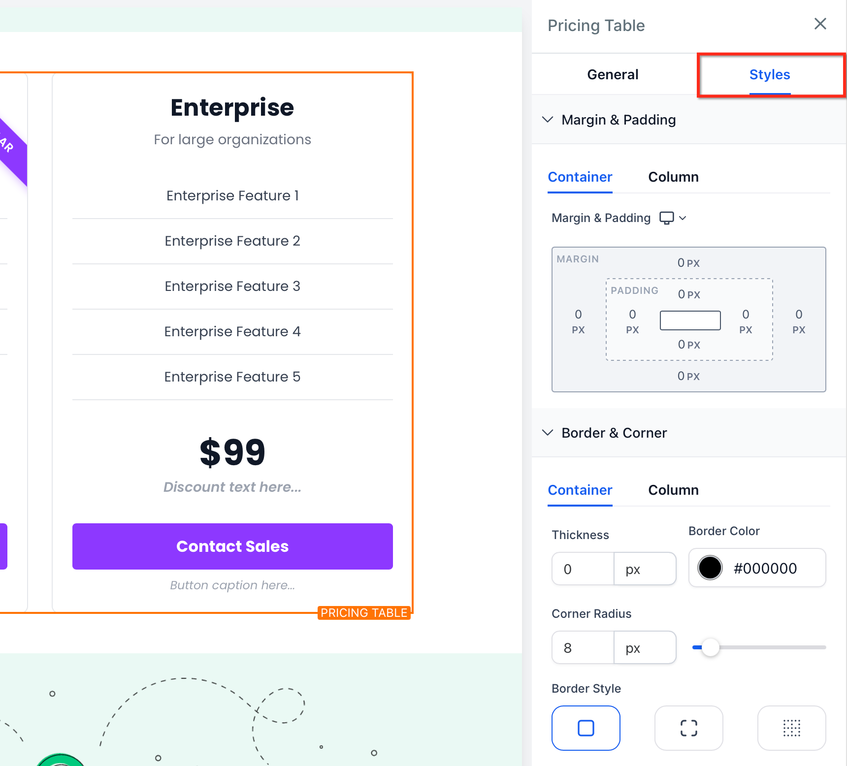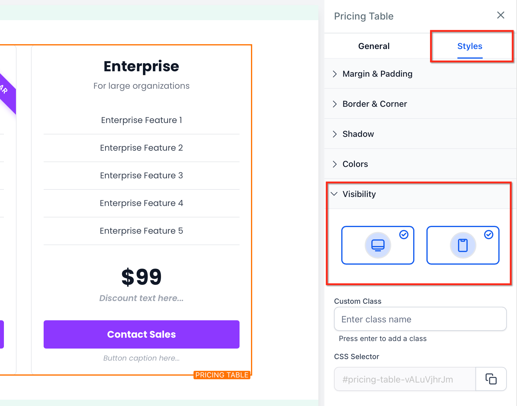 Styling ensures the Pricing Table blends with your brand while remaining readable and accessible.