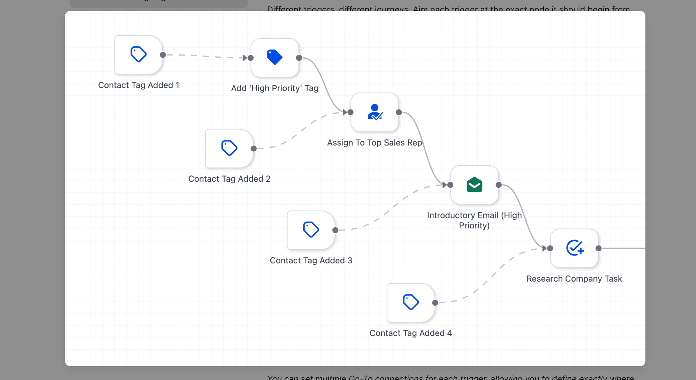 You can set multiple Go-To connections for each trigger, allowing you to define exactly where a contact should start when that specific trigger fires.