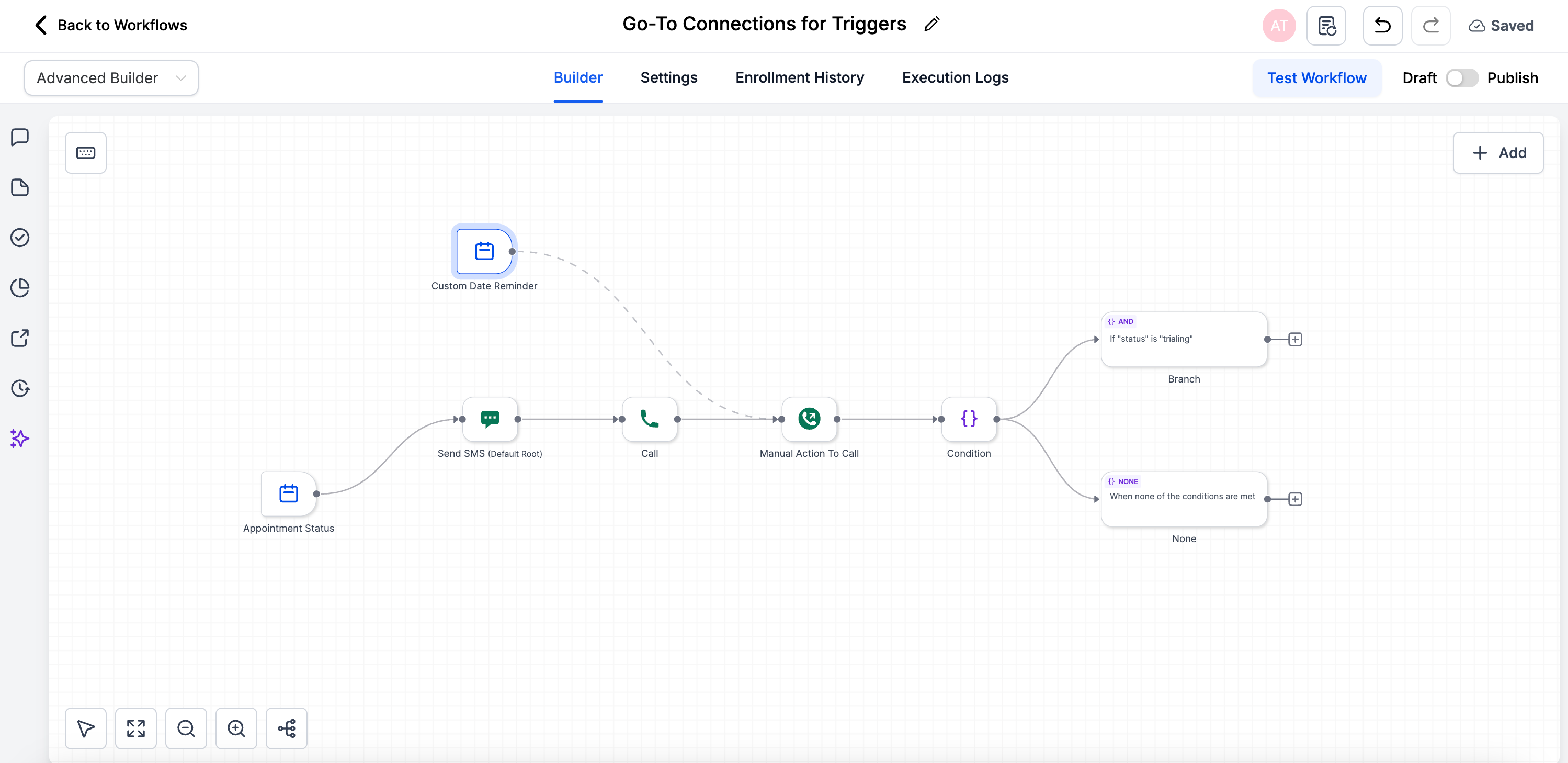 Go-To connections for triggers lets you point each trigger to the exact action where its path should begin—right on the canvas. It keeps complex entry logic tidy without duplicating workflows or building giant if/else stacks.