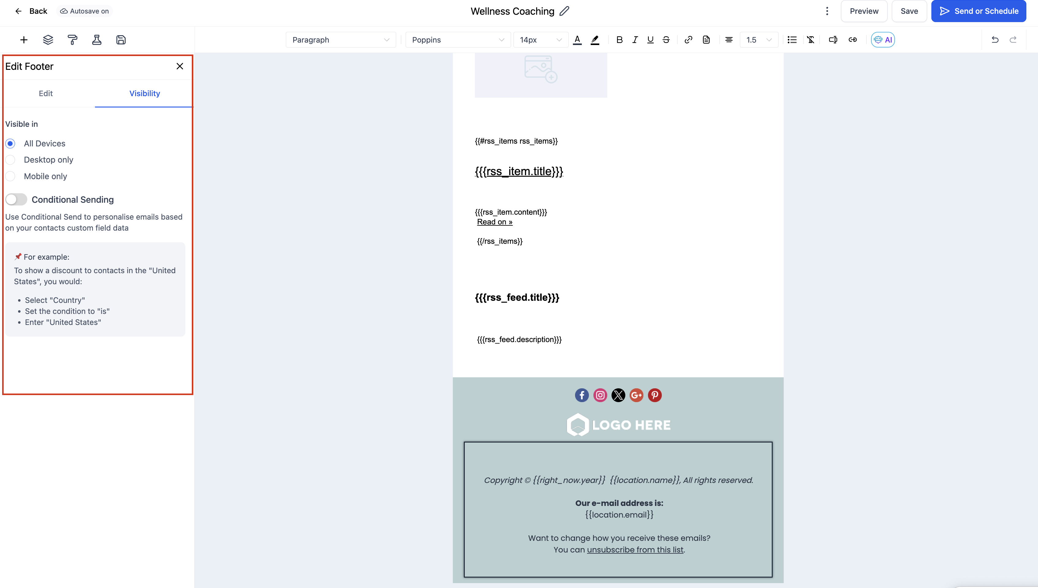 Preview your email on both desktop and mobile to ensure your footer displays clearly and aligns properly.