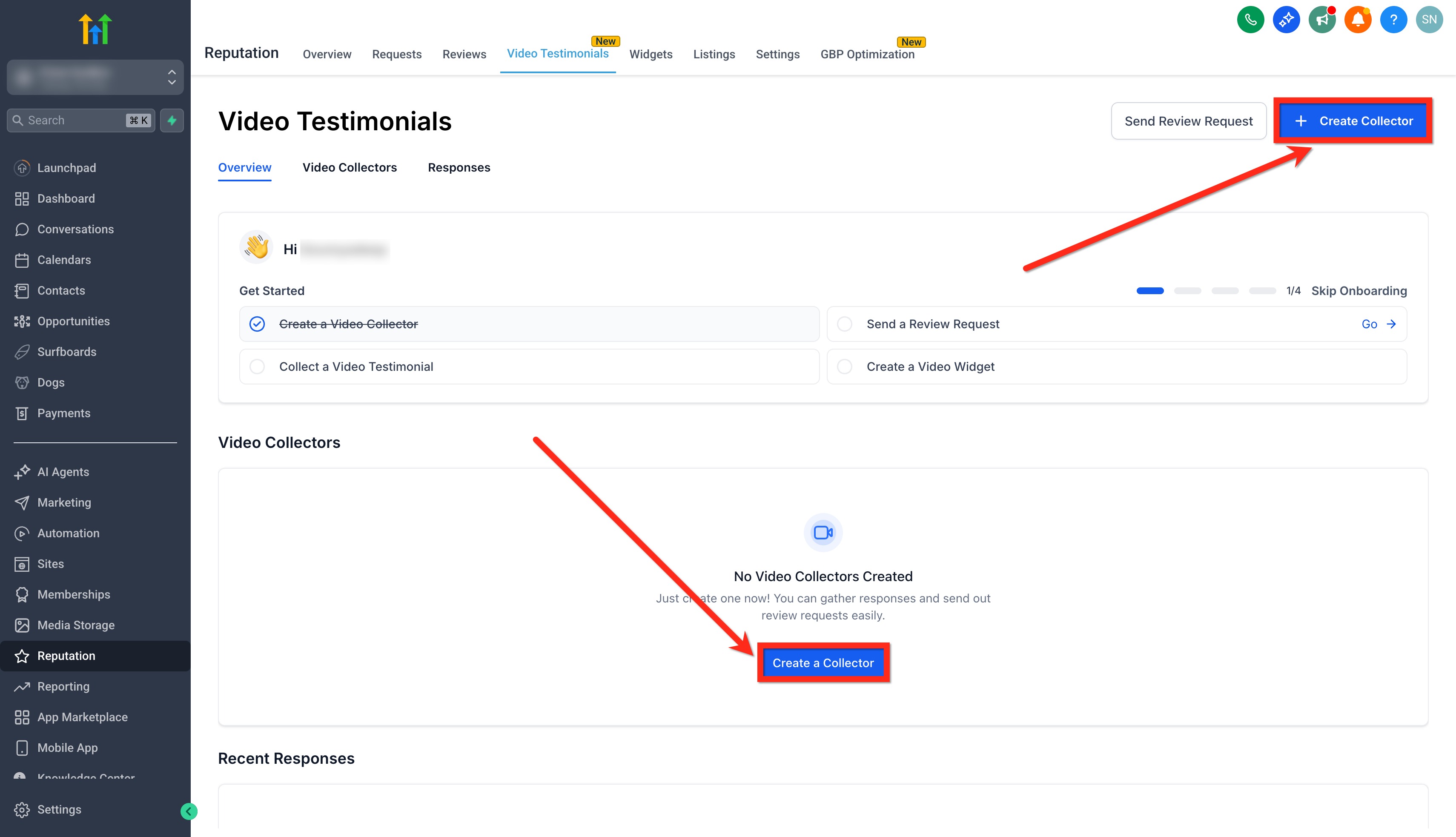 1. Open ReputationVideo TestimonialsResponses.