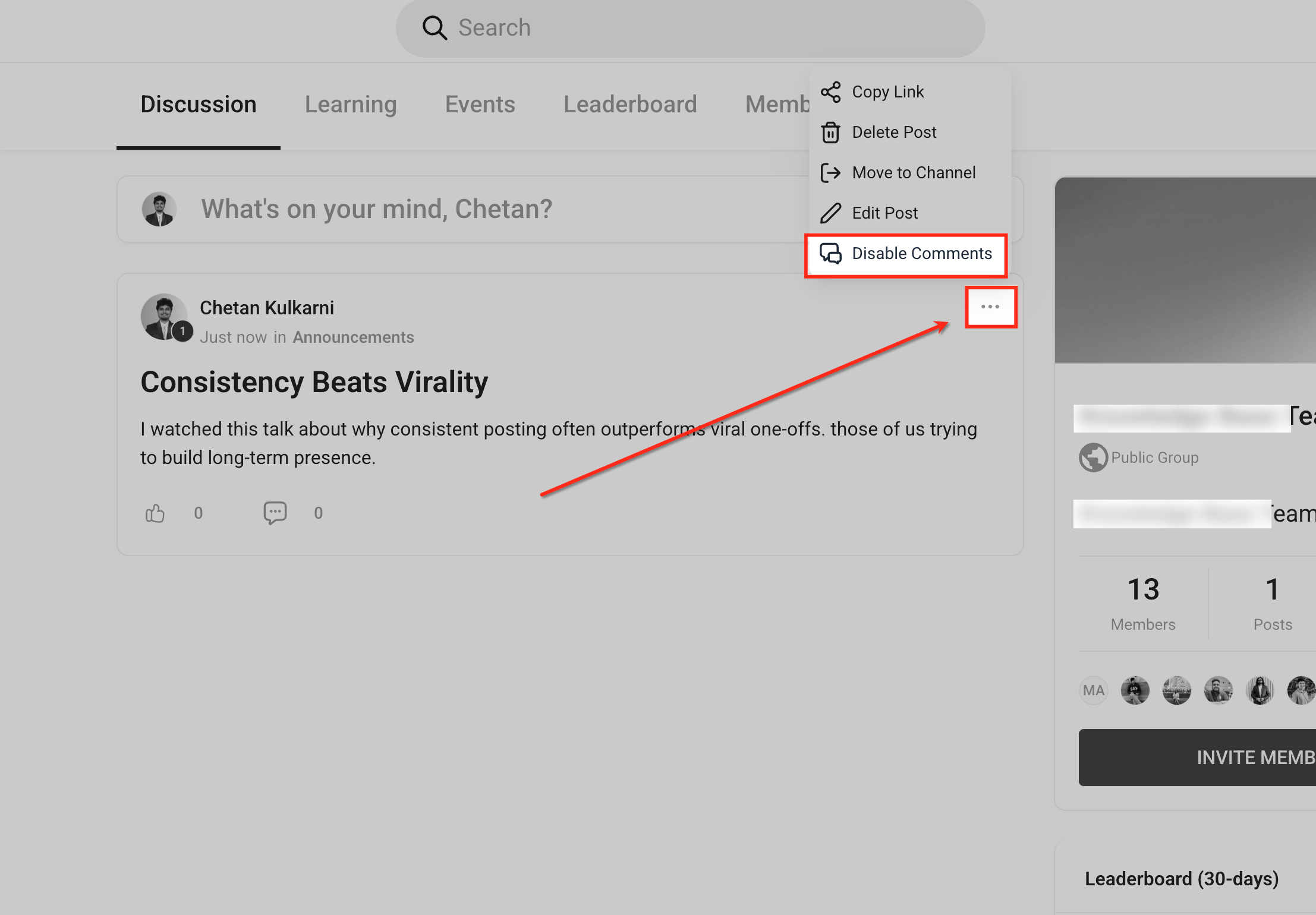 Manage Commenting on Your Posts feature gives you full control over when members can reply to your content in Communities. Whether you’re sharing an announcement, posting a resource, or starting a discussion, you can decide if a post should invite interaction or stay read-only. This article explains how to enable or disable comments while creating or editing posts, how announcement channels behave, and how to manage engagement effectively.
