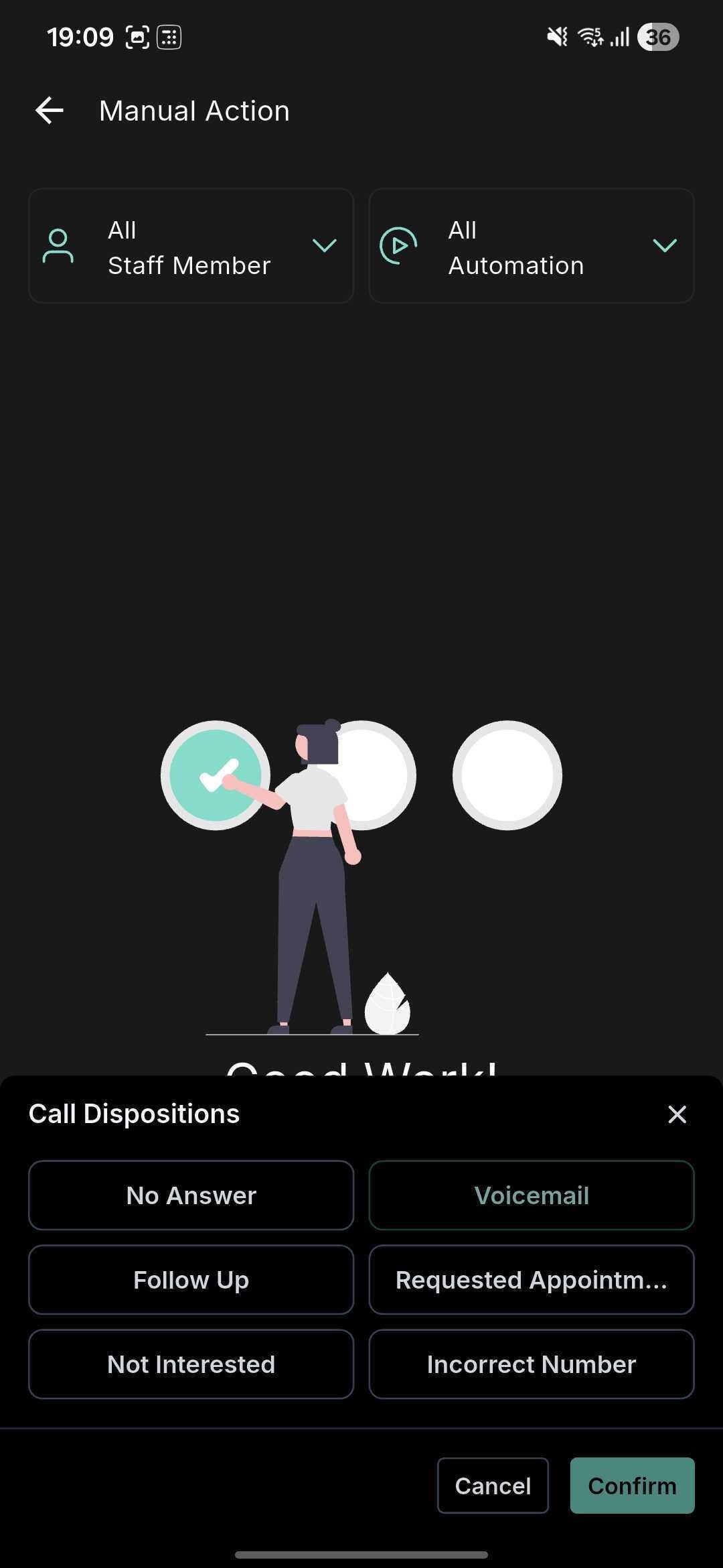 - The manual call status selection option has been replaced by Call Disposition.