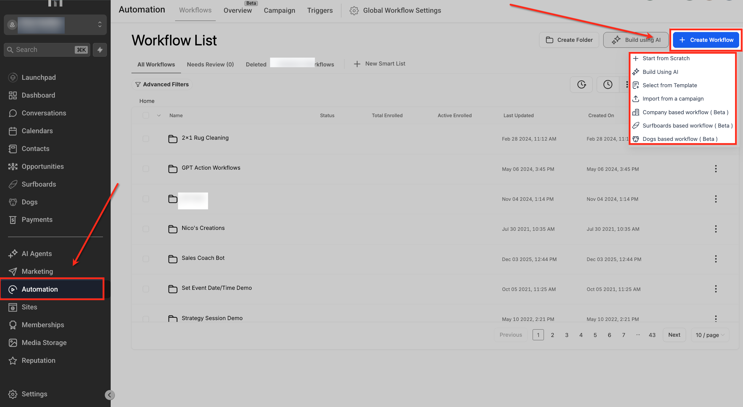 Navigate to Automation > Workflows.