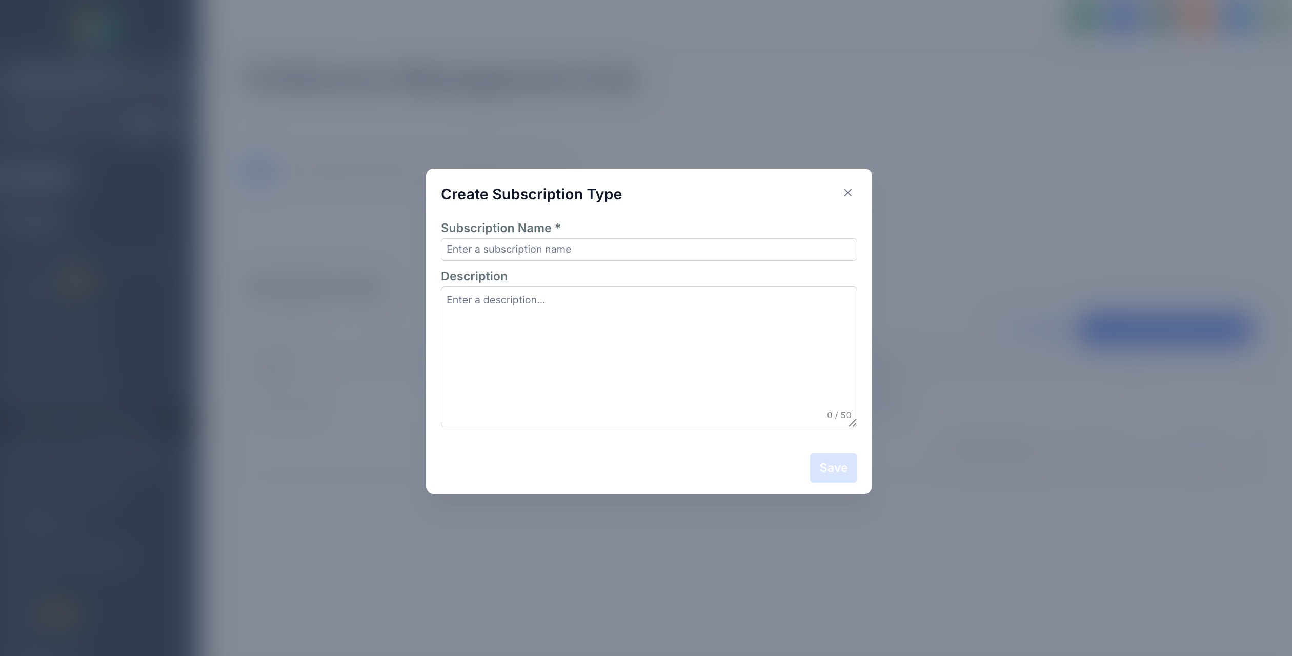 2. Click + Create Subscription Type.