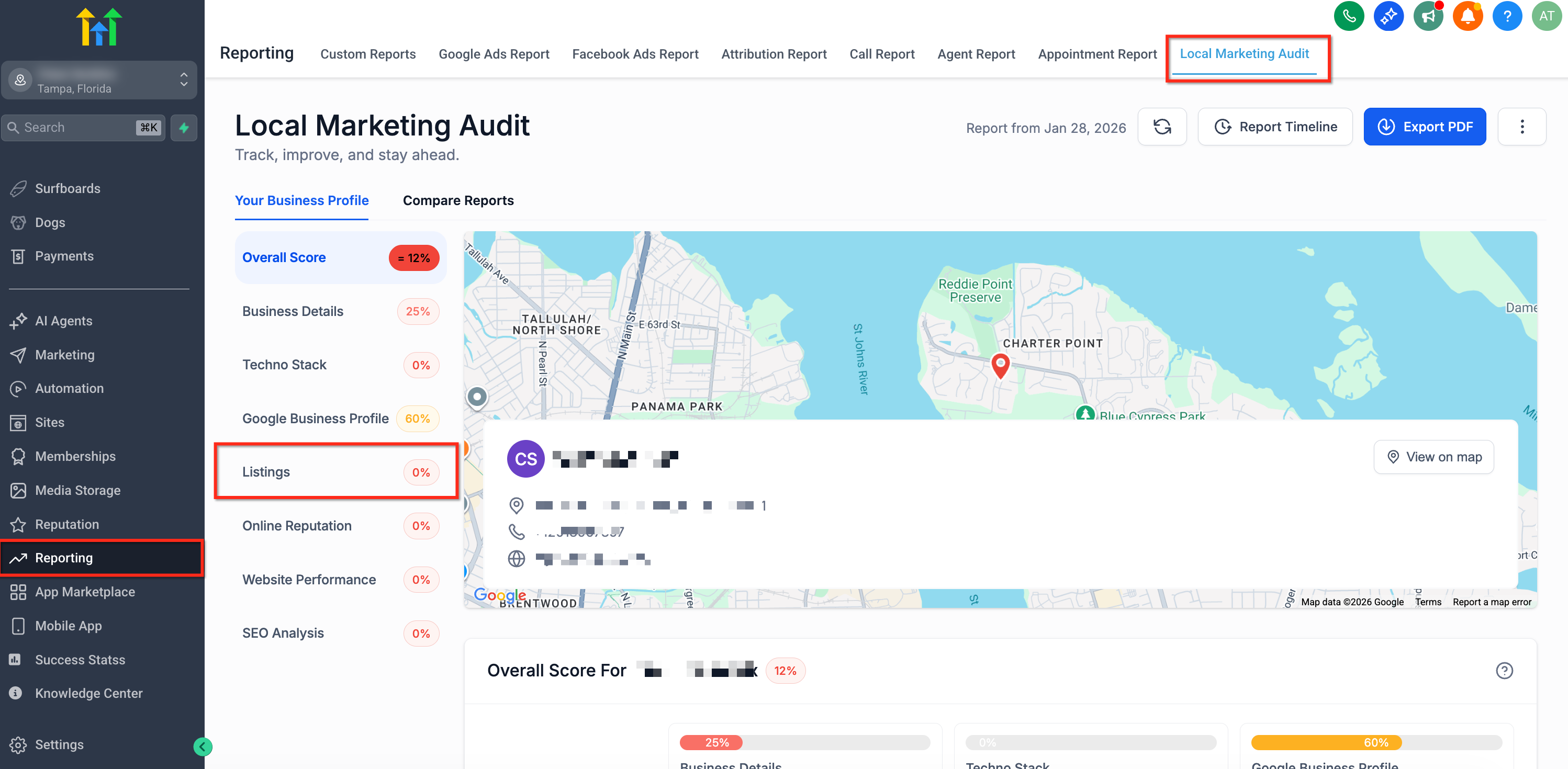 1. Open a Marketing Audit Report (Sub‑Account → Reporting → Local Marketing Audit)