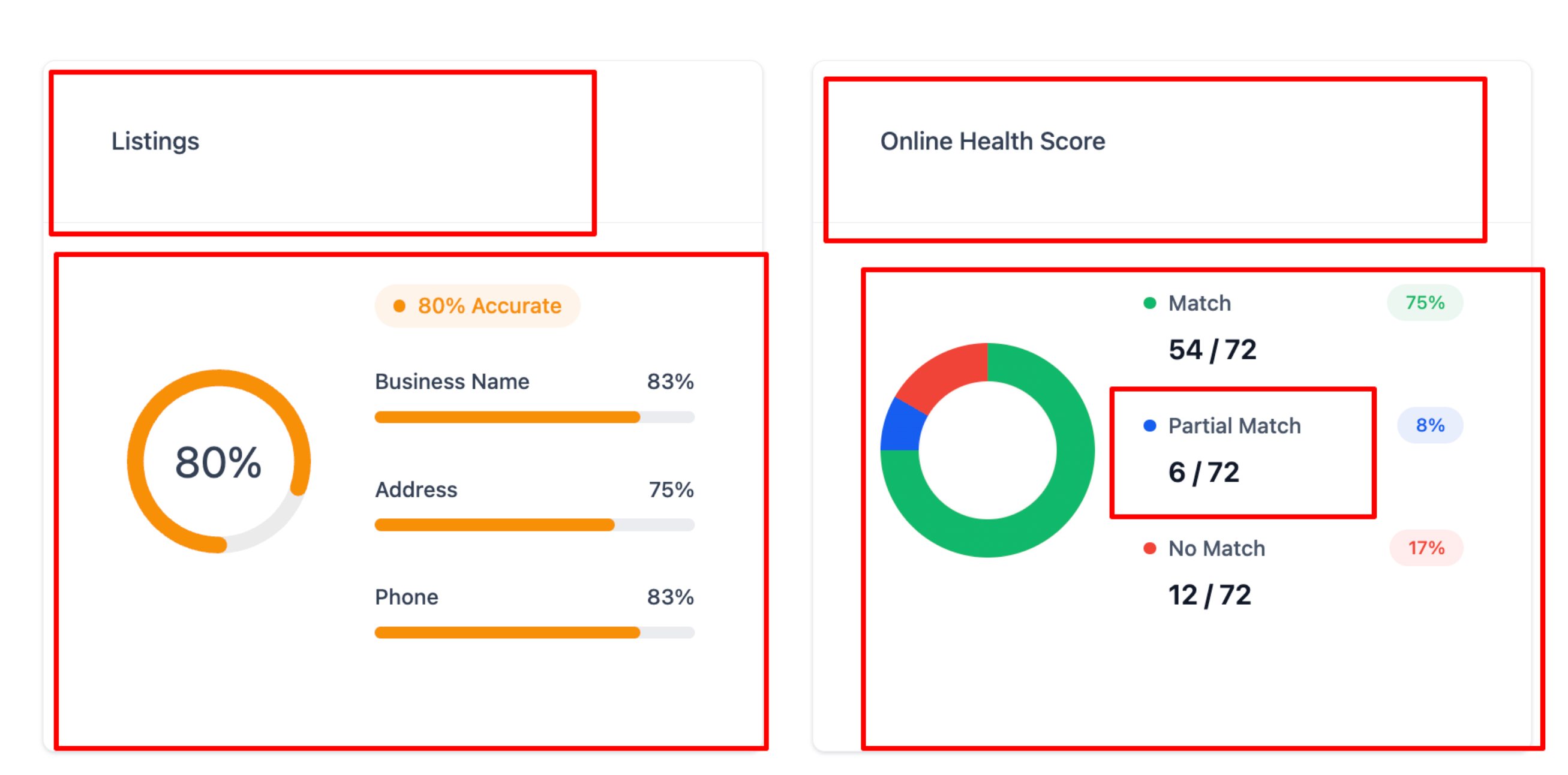 Note: Exact field logic and thresholds may vary by publisher. Partial Match generally indicates at least one mismatch among core NAP fields (Business Name, Address, Phone).