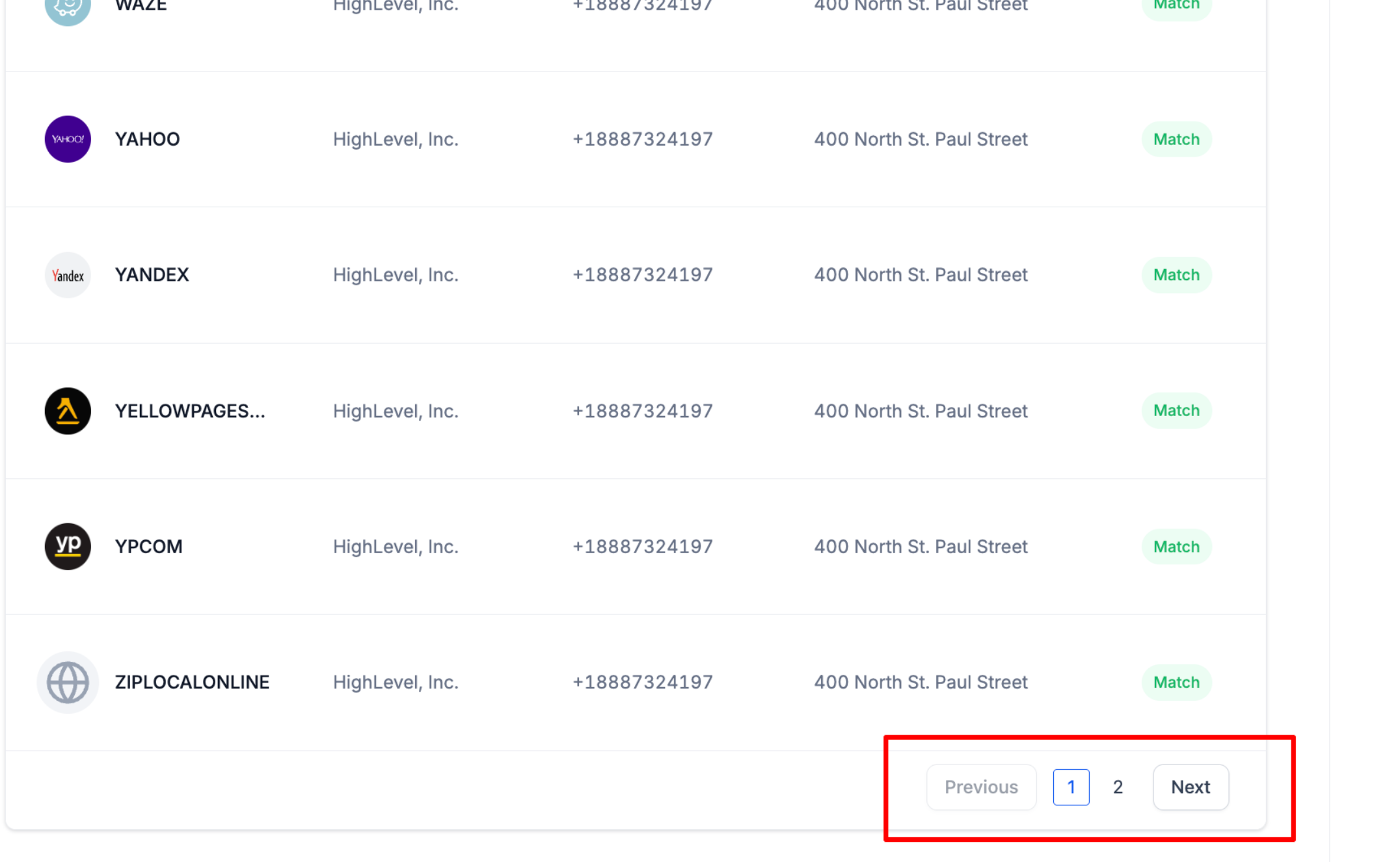 Multi‑source validation: HighLevel consolidates data from Yext, Uberall, and internal Yext Entity Search to improve accuracy.