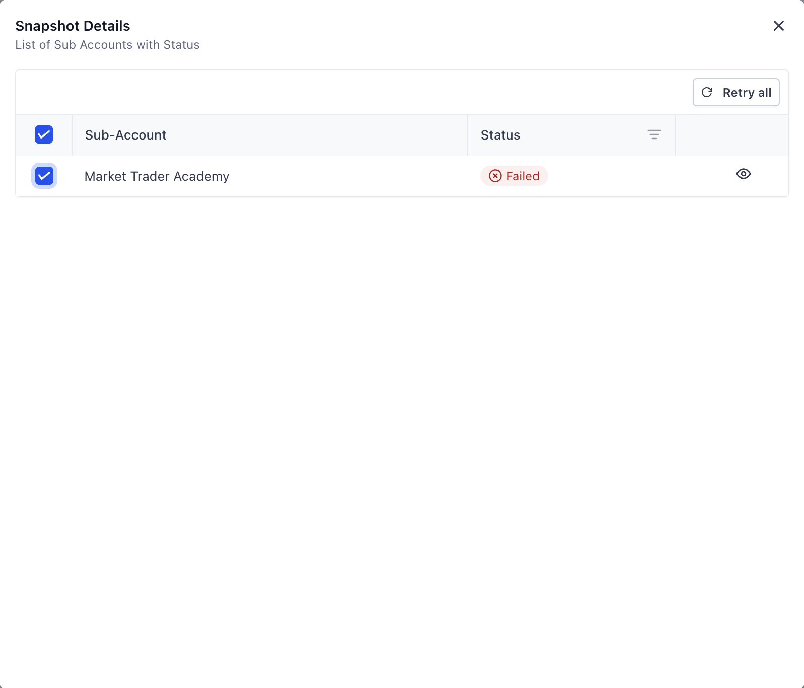 Time savings: Retry failed sub-accounts without rebuilding a full snapshot push.
